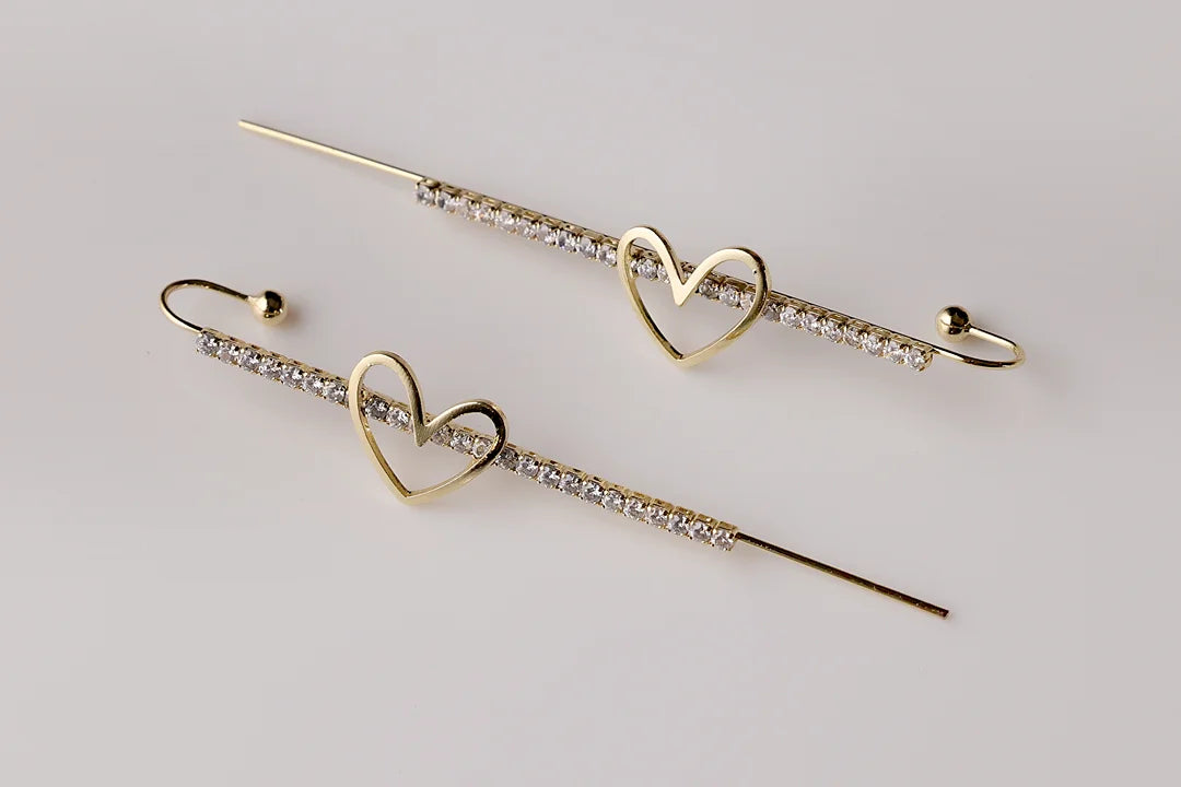 Experience Suav Jewels’ exclusive pin hook earrings – a chic accessory requiring just one piercing. Designed with a gold-tone finish and adorned with sparkling diamond-like stones, these high-quality earrings offer a luxurious, stylish look. Trendy and unique, they’re perfect for making a statement.