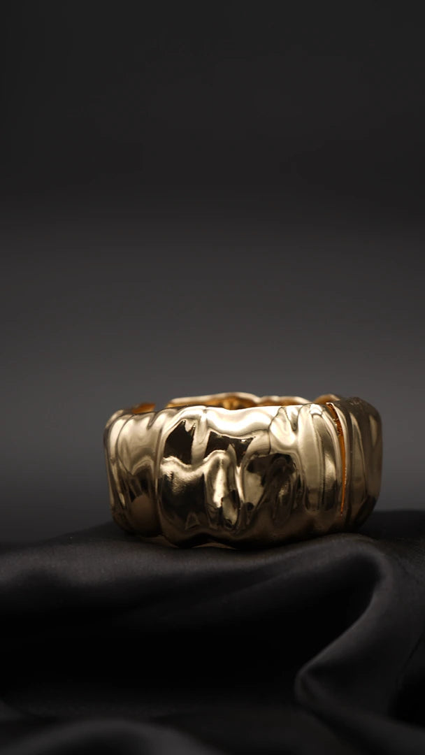 Bold. Sculpted. Unapologetically radiant. The Elle Shine Bangle is designed to turn heads with its fluid, high-shine silhouette and rich gold tone. Its molten texture adds a dramatic edge while still staying effortlessly wearable. Crafted with anti-tarnish, waterproof materials, this statement piece blends strength and softness — perfect for elevating both everyday and festive looks. Wear it solo to stand out, or stack it to slay.
