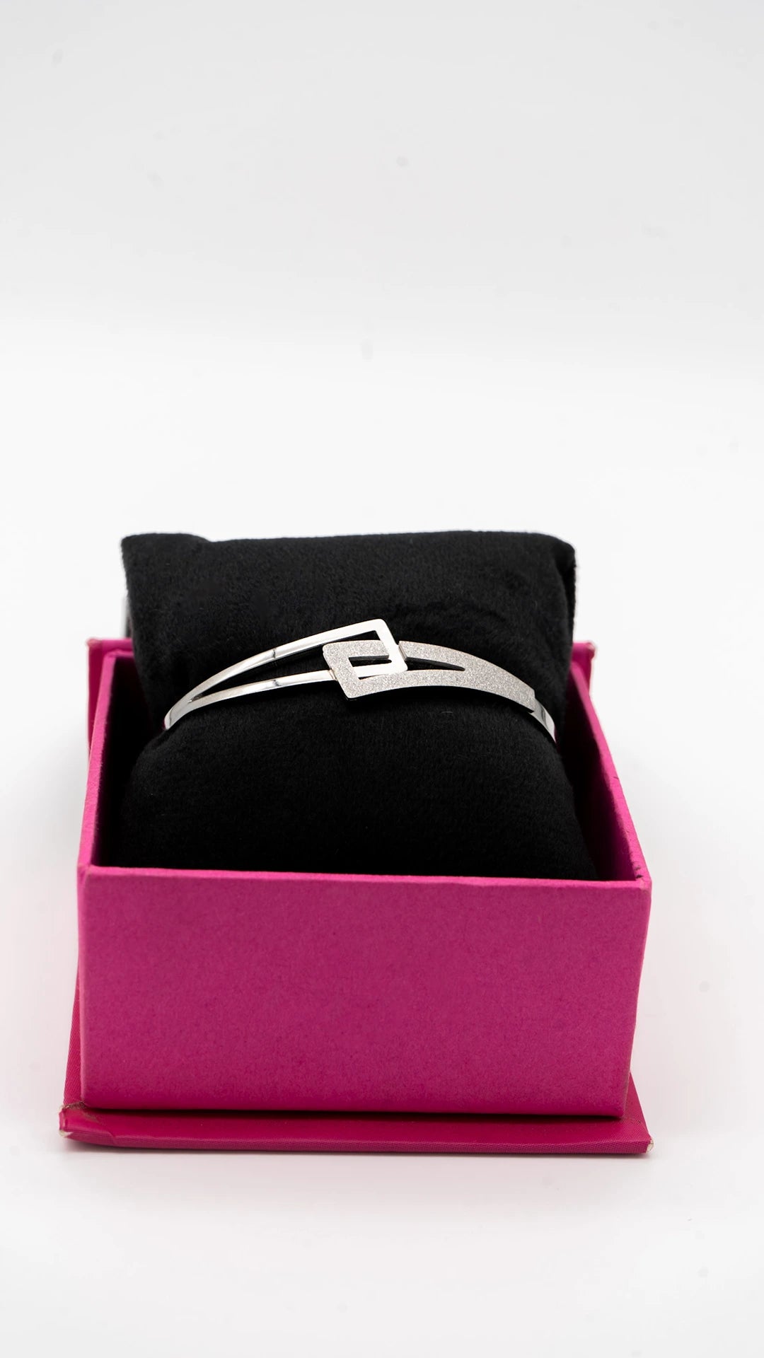 Modern minimalism, redefined. The Elinx Bangle features a sleek dual-band design with an interlocked geometric centerpiece — a symbol of connection, strength, and quiet confidence. Crafted in a polished silver-tone with a soft matte texture, it's anti-tarnish, lightweight, and built for everyday sophistication. Wear it solo for a clean, contemporary look or stack it with intention. Elinx is where elegance meets edge.