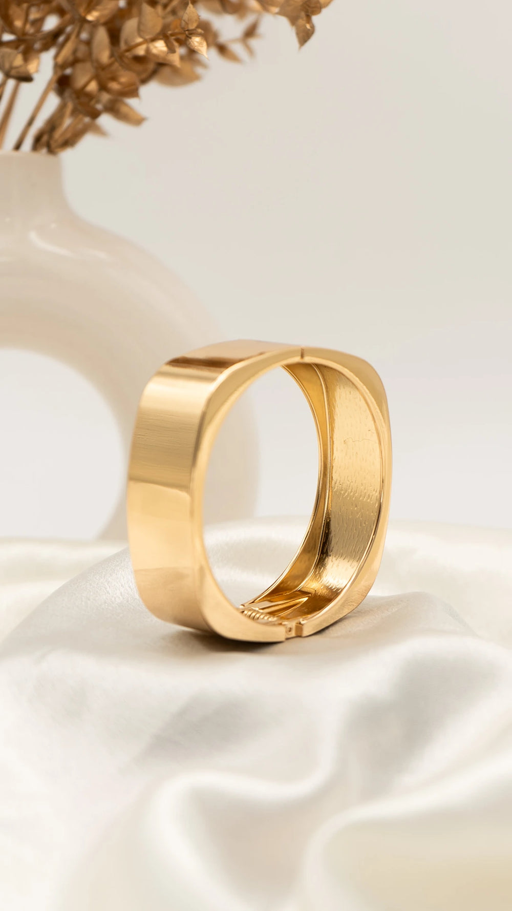 Sleek, sculptural, and impossible to ignore — the Golden Square Statement Bangle is where modern design meets timeless glamour. Its bold square silhouette offers a refreshing twist on the classic bangle, while the polished gold finish adds just the right amount of shine. Whether worn solo for a minimalist edge or layered for maximum drama, this piece is made to turn heads.