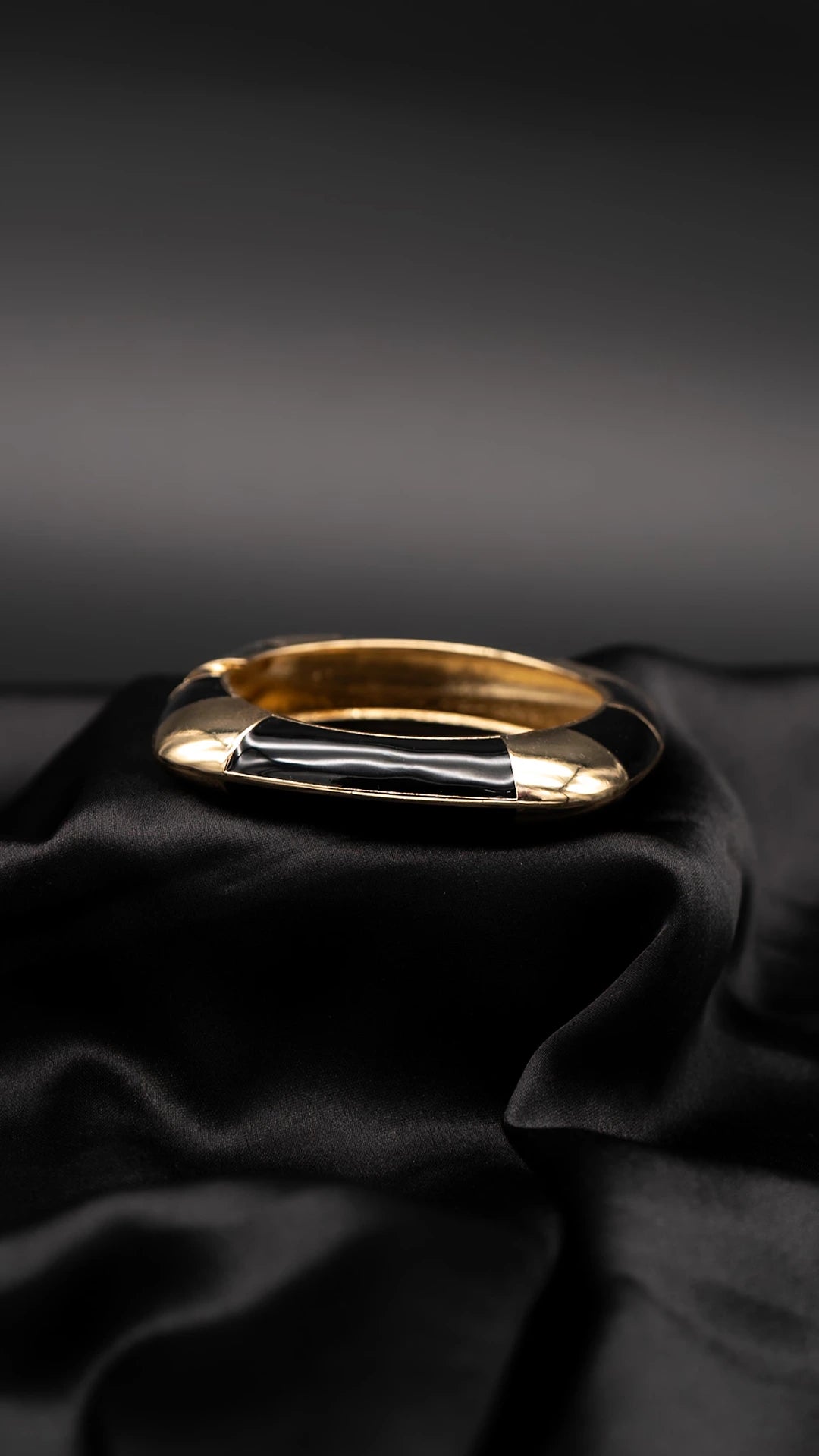 Fierce and flawless, the Noir Arc Bangle is where bold geometry meets classic contrast. With alternating panels of deep black enamel and high-shine gold, this sculptural square silhouette is designed to stand out. A perfect blend of edge and elegance, it’s your statement piece for after-dark glam or power dressing.