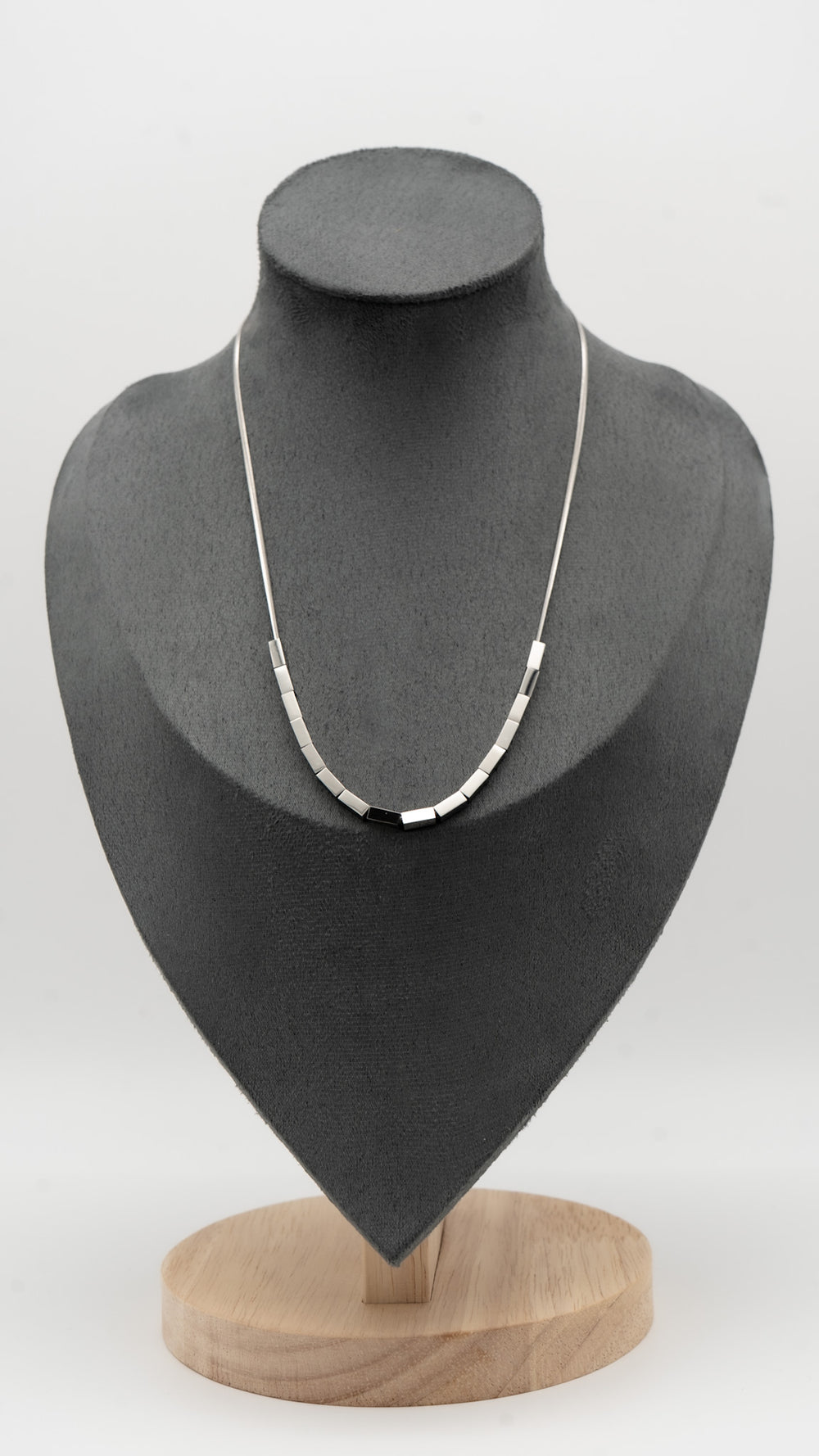 Bold in form yet minimal in essence, the Cubia Silver Link Necklace is a celebration of clean geometry and modern elegance. Featuring a sleek arrangement of silver-toned cuboid beads on a slender chain, this piece brings structure and shine to any look. Lightweight, anti-tarnish, and hypoallergenic — it’s perfect for everyday sophistication or effortless layering. Elevate your style with this sharp, contemporary classic.