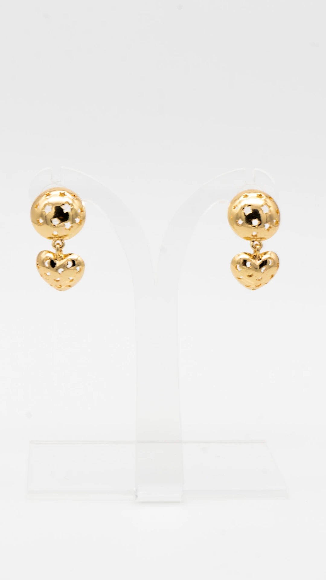 The Stellar Hearts are where playful charm meets celestial shine. Featuring star-punched golden orbs paired with puffy heart drops, these earrings are the perfect mix of dreamy and bold. Lightweight and full of personality, they sparkle with every move — making them your go-to for adding a cosmic touch to any outfit. Whether it’s brunch, date night, or a spontaneous selfie session, Stellar Hearts are made to shine just like you. Anti-tarnish, statement-ready, and seriously cute.