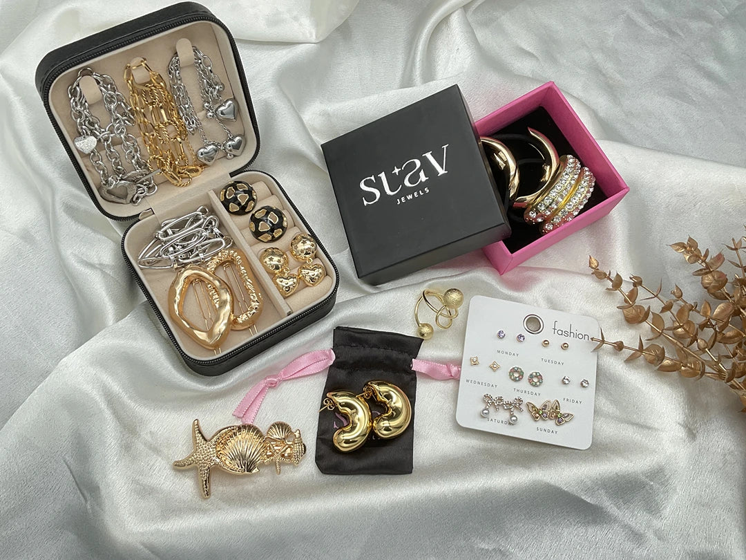 A show-stealing collection of 15 versatile jewelry pieces, this hamper is your go-to for effortless elegance across Indian and Western fits. With sculptural hair accessories, sleek chains, sparkly studs, and standout rings, it’s the kind of gift that feels personal, thoughtful, and premium. Whether you're buying for yourself or someone special, this box brings the perfect balance of bold and wearable. Comes with a free luxe jewelry organizer to store it all beautifully.