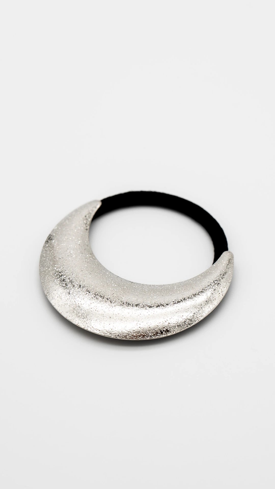 With its sculptural crescent shape and textured silver glow, this piece captures the quiet beauty of the night sky in a sleek, wearable form.