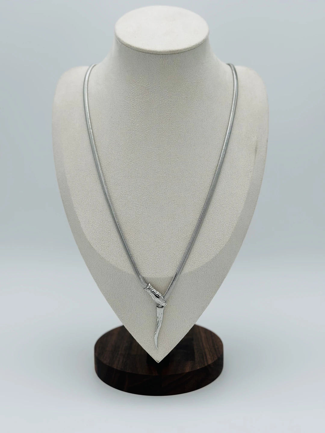 Sharp, sleek, and undeniably bold — the Silver Fang necklace features a polished chain and a sculpted fang pendant wrapped in subtle silver accents. It’s a symbol of strength and edge, crafted to stand out. Waterproof, tarnish-free, and perfect for making power moves — day or night.
