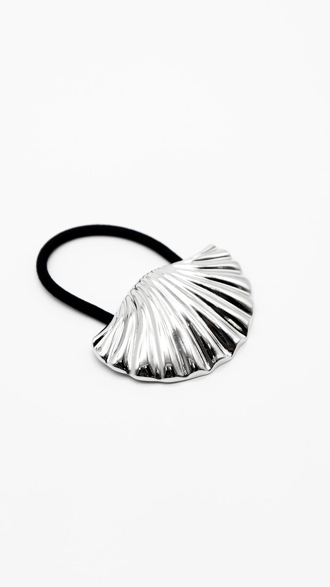 Elevate your ponytail with the Silver Shell Hair Cuff—a polished stainless steel accessory inspired by the elegance of ocean shells. Its ridged, fan-like design catches the light beautifully, adding subtle sophistication to any look. Lightweight yet durable, this cuff secures your hair comfortably without snagging or breakage. Perfect for both casual and dressy occasions.