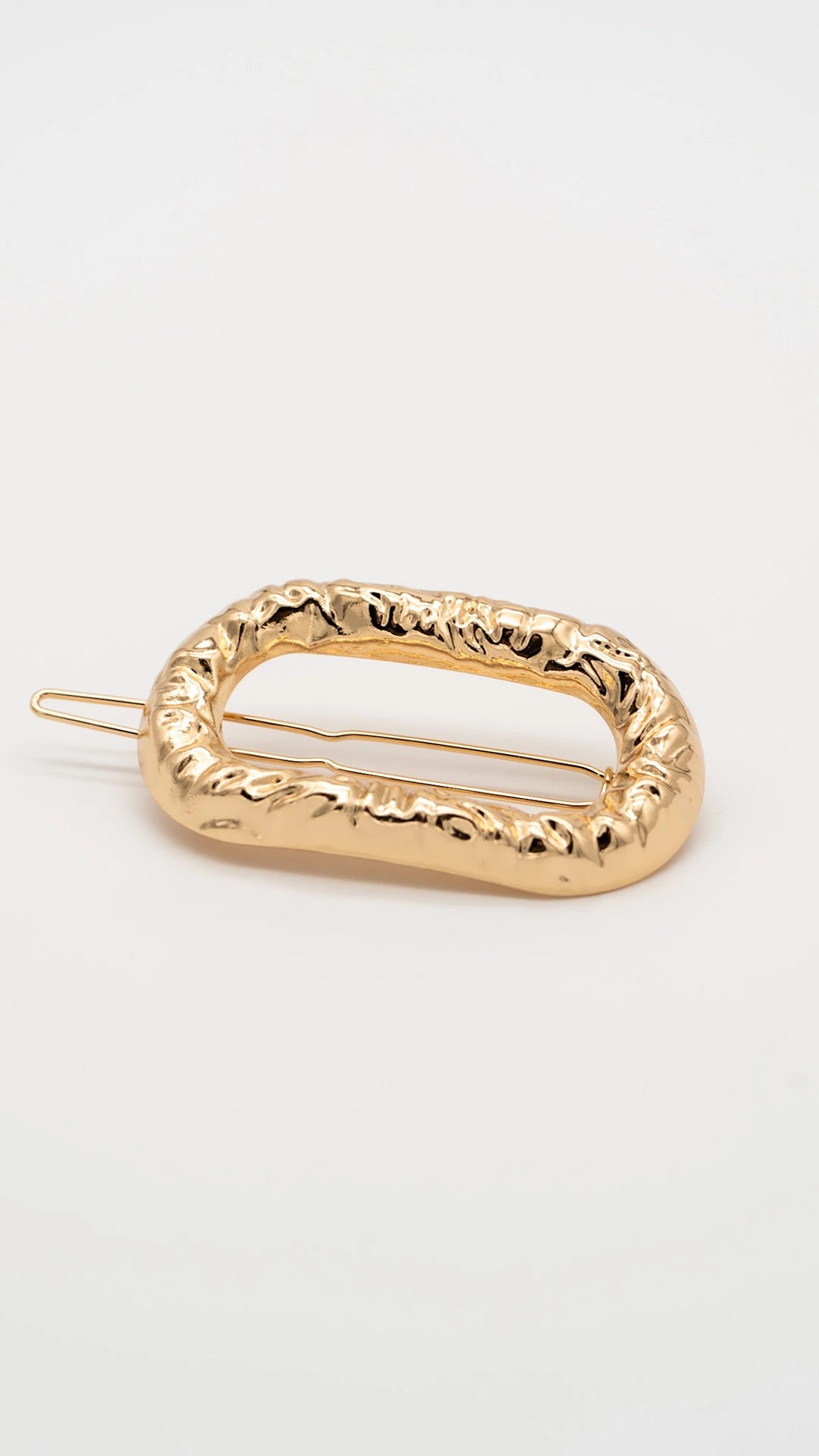 Where structure meets fluidity — Melted Bound is a sculptural gold barrette clip that redefines bold elegance. Its organic, molten texture wraps around a clean rectangular form, creating a striking contrast that feels both raw and refined. Designed to stand out in the most effortless way.