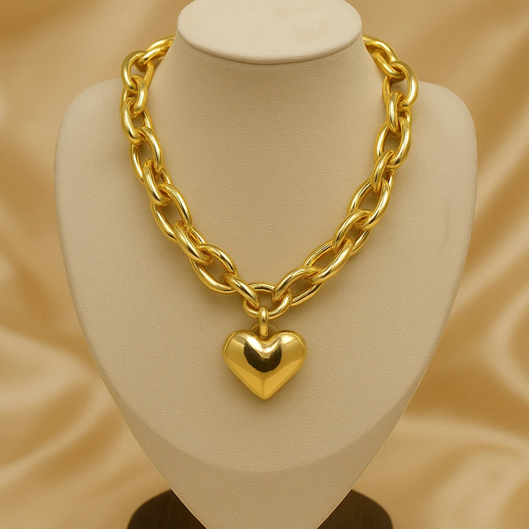 Bold yet timeless, the Golden Metallic Heart necklace features a chunky silver chain crowned with a sleek, high-shine heart pendant. Crafted to reflect strength and softness in perfect balance, this piece is a statement of modern love and unapologetic style. Wear it solo for a confident edge or layer it to amplify your look—either way, all eyes will follow.