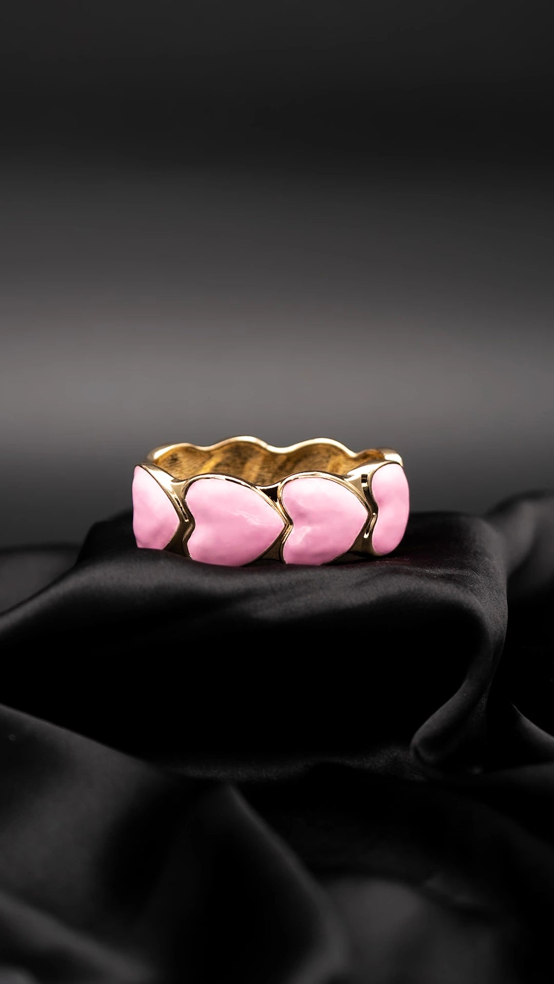 Charming and playful, the Sweetheart Bangle is designed to make your everyday feel a little more magical. Featuring glossy pink enamel hearts framed in warm gold, this bangle brings a sweet pop of color and a whole lot of love to your stack. Wear it solo or layer it for a flirty, fun statement.