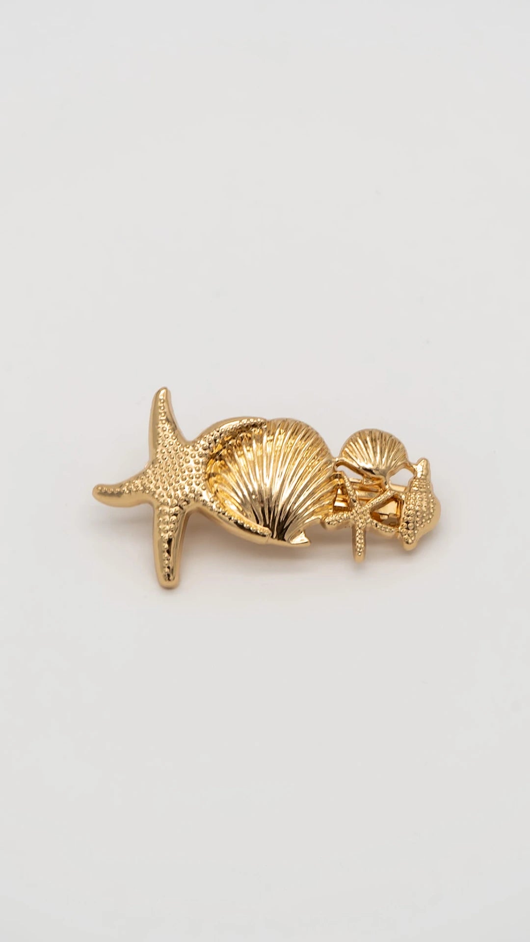 Capture the essence of the shore with Coastline — a dreamy barrette that blends golden starfish and seashells into one radiant design.