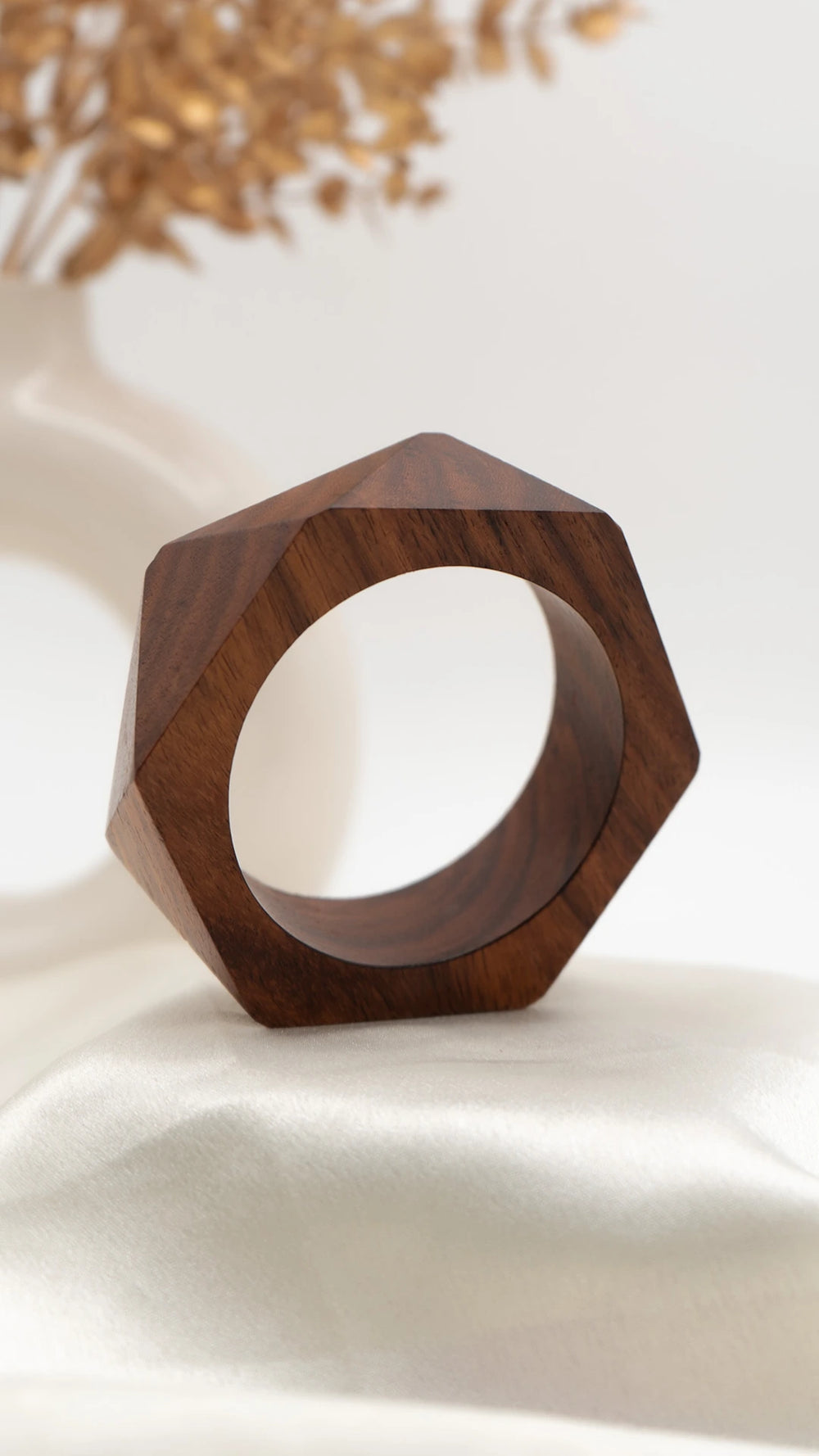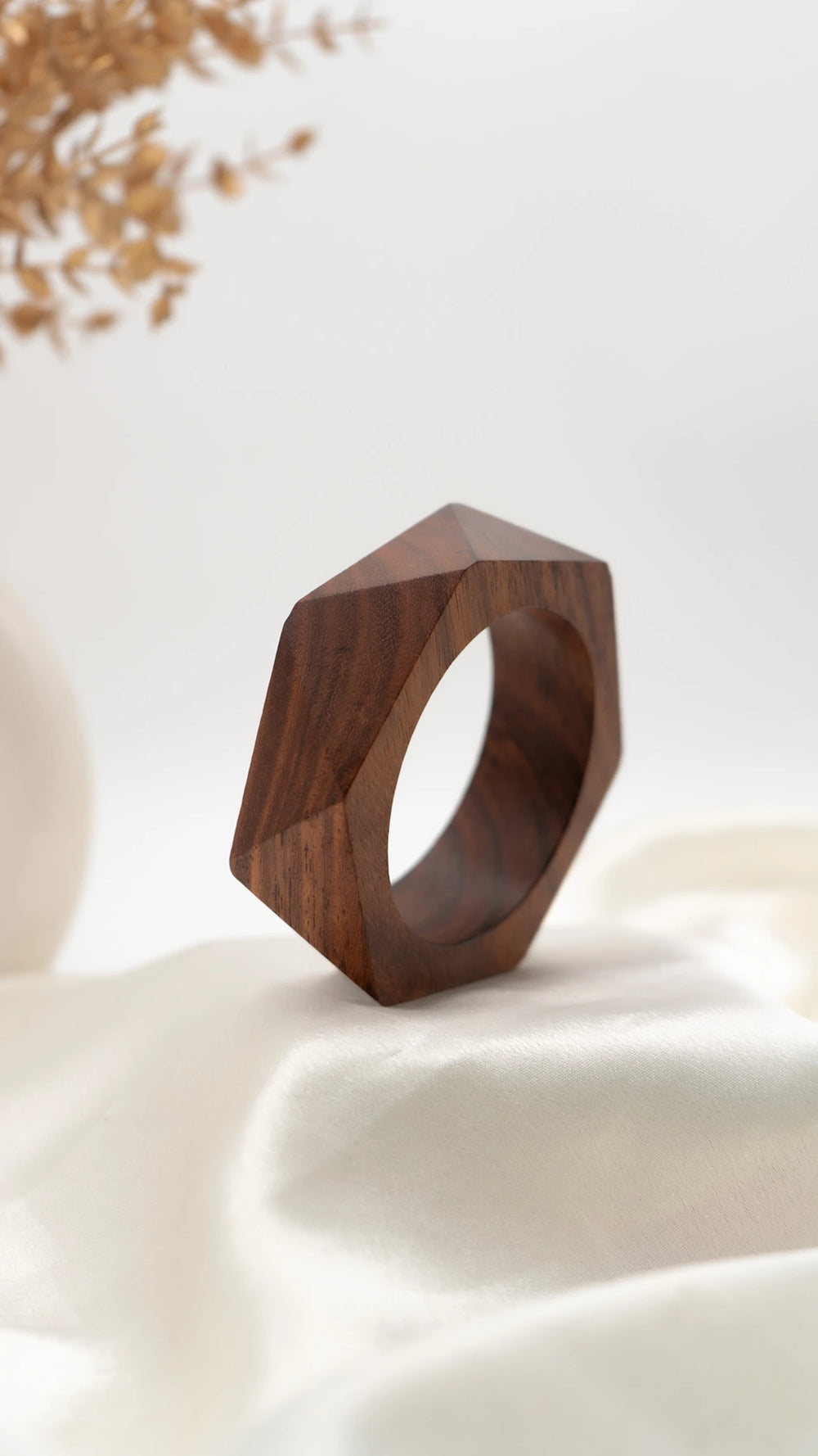 Modern, bold, and effortlessly stylish — the Geometry Wooden Bangle is crafted with sharp, faceted edges that give it a sculptural and contemporary appeal. Made from rich dark wood, its clean geometric form adds an architectural touch to your jewelry collection, making it a true statement piece.