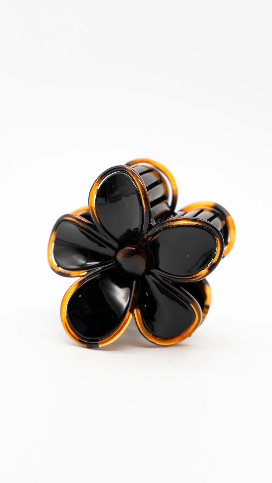 Sleek and striking, the Midnight Bloom Claw Clip is a floral-inspired accessory with a bold, modern twist. Its glossy black petals, edged in warm amber tones, create a stunning contrast that elevates any hairstyle. Designed with a sturdy claw grip, it holds your hair securely without snagging, making it perfect for everything from casual half-ups to polished buns. A chic statement piece that transitions seamlessly from day to night.