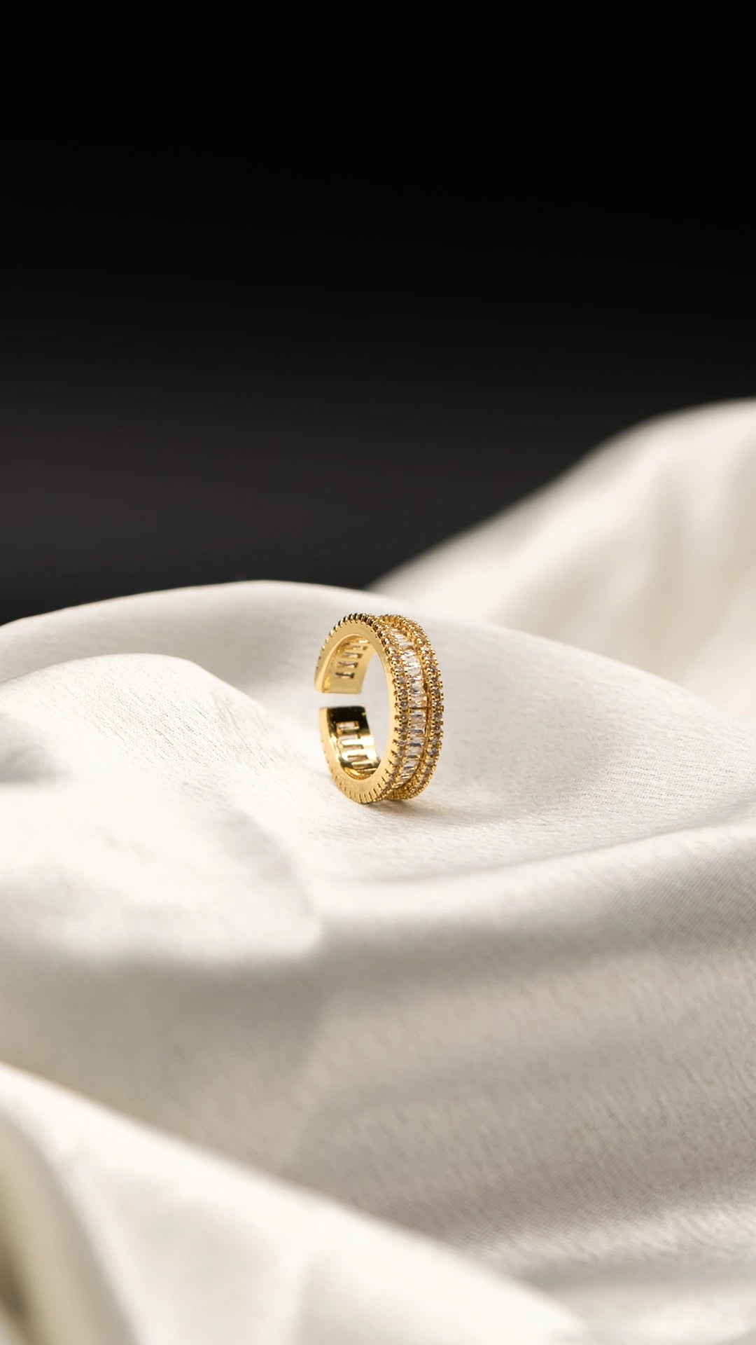 The Halo Thread ring is the perfect balance of subtle sparkle and timeless elegance. Featuring a sleek gold band intricately lined with a row of dazzling stones, it catches the light with every movement—like a delicate thread of stardust wrapped around your finger. Its slim, sophisticated profile makes it ideal for stacking or wearing solo as a minimalist statement. Crafted with a premium anti-tarnish finish and skin-friendly materials, the Halo Thread ring is an everyday essential that adds a whisper of luxury to any look.