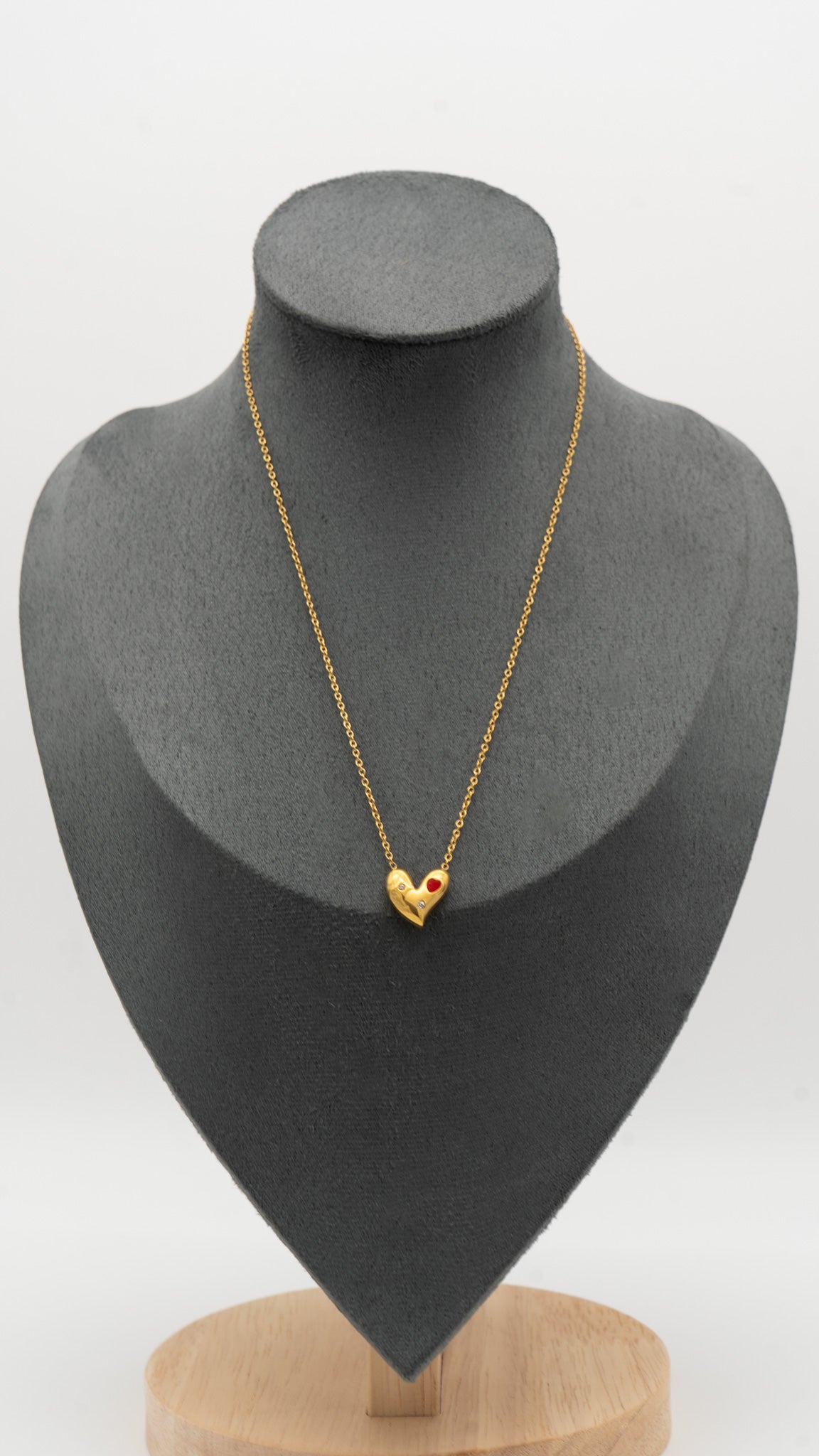 Bold yet delicate, the Red Muse Heart Necklace is a charming tribute to fearless love. Featuring a sculpted gold heart adorned with a vivid red enamel accent and dainty crystal details, this necklace speaks volumes in quiet elegance. Lightweight and expressive, it’s perfect for adding a hint of passion to everyday looks. Anti-tarnish, hypoallergenic, and finished in premium gold plating — a true muse for your neckline.