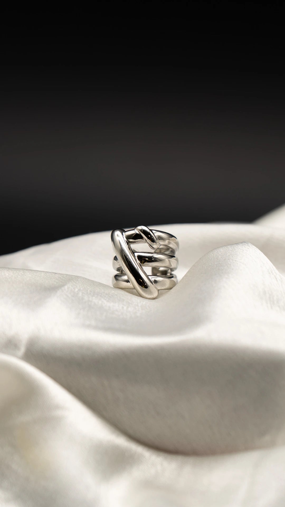 The Silver Vera Loop is a bold sculptural ring that redefines modern minimalism. Crafted in a high-shine silver finish, its fluid, interwoven loops create a striking silhouette that feels both architectural and effortlessly cool. Designed for the style-forward woman, this statement piece wraps around the finger with comfortable ease, making it perfect for everyday edge or elevated looks. Its anti-tarnish and skin-friendly make ensures lasting shine with zero fuss — the kind of piece you reach for when you want your jewelry to speak volumes.