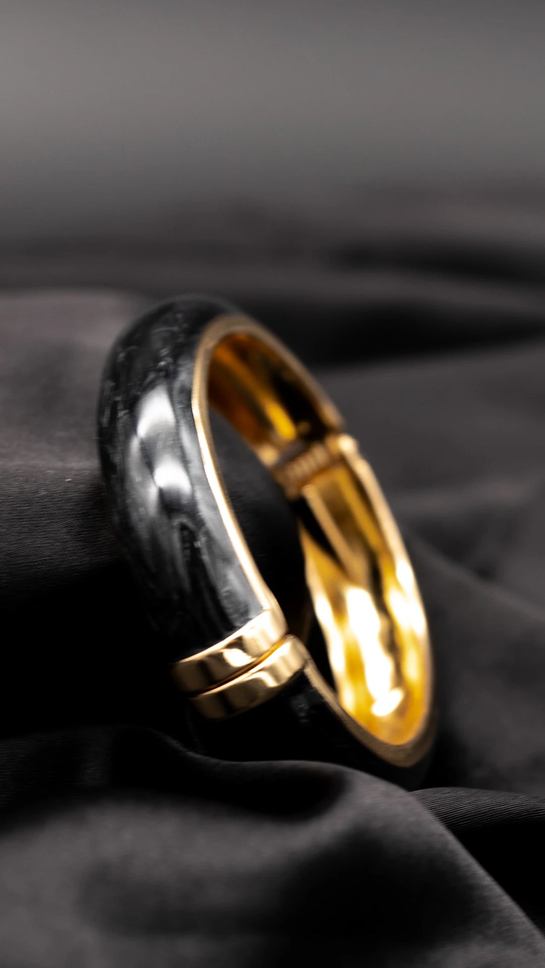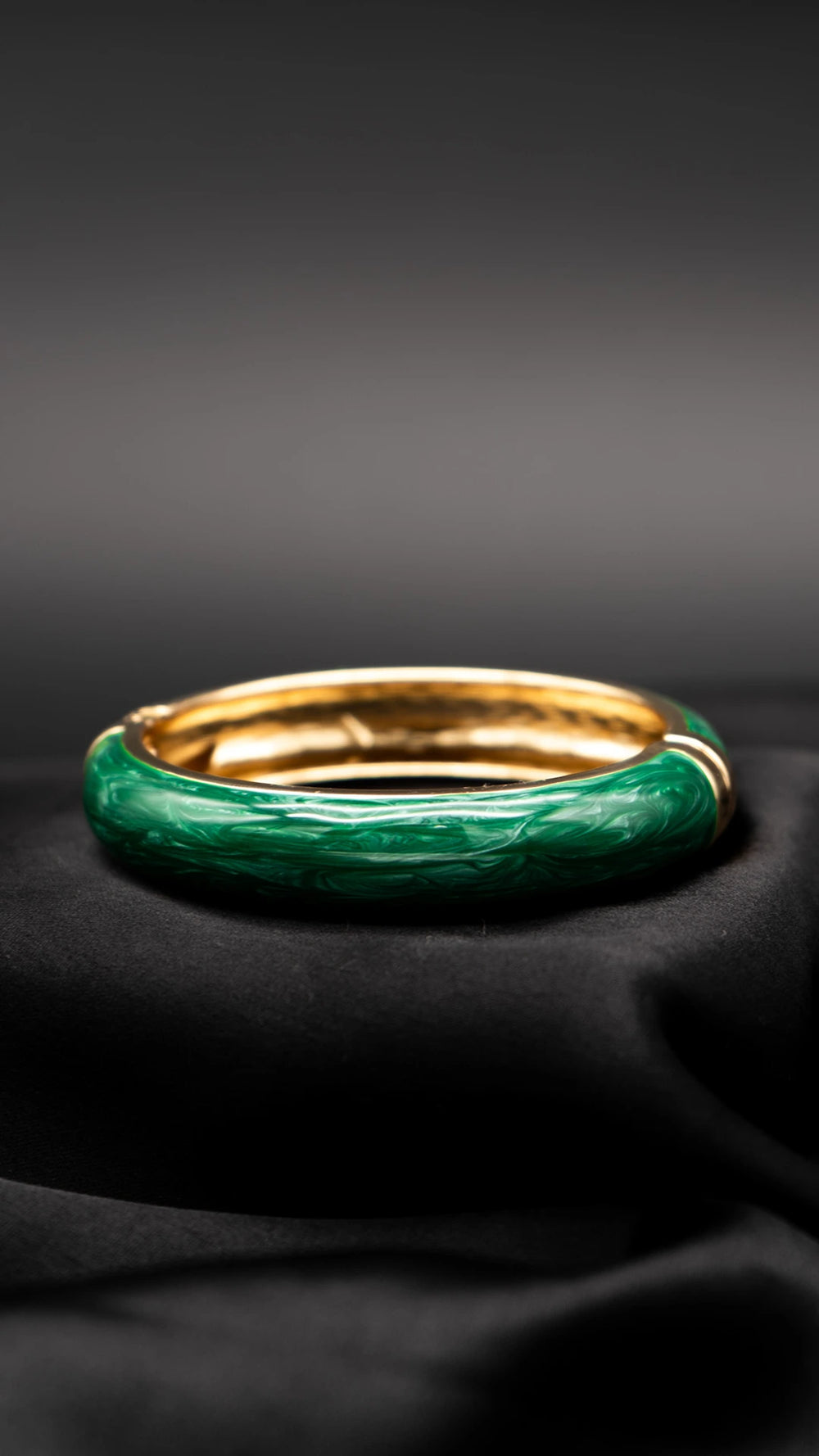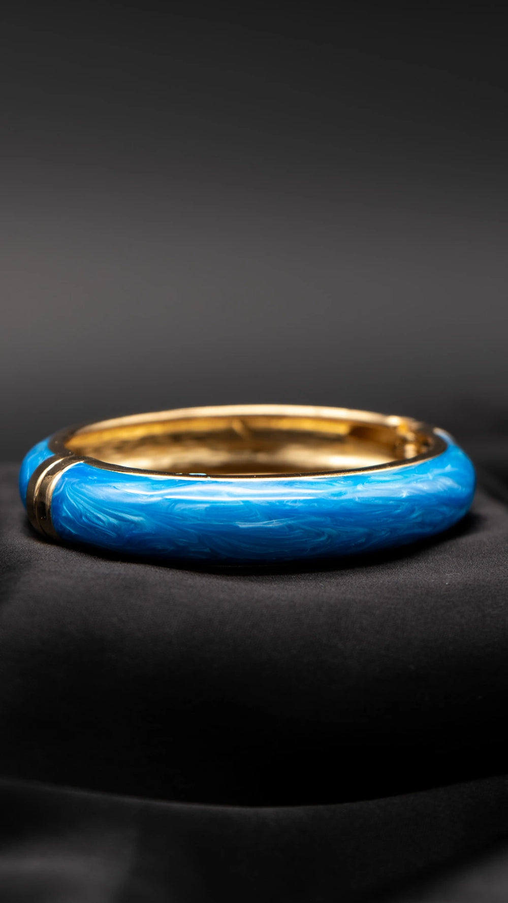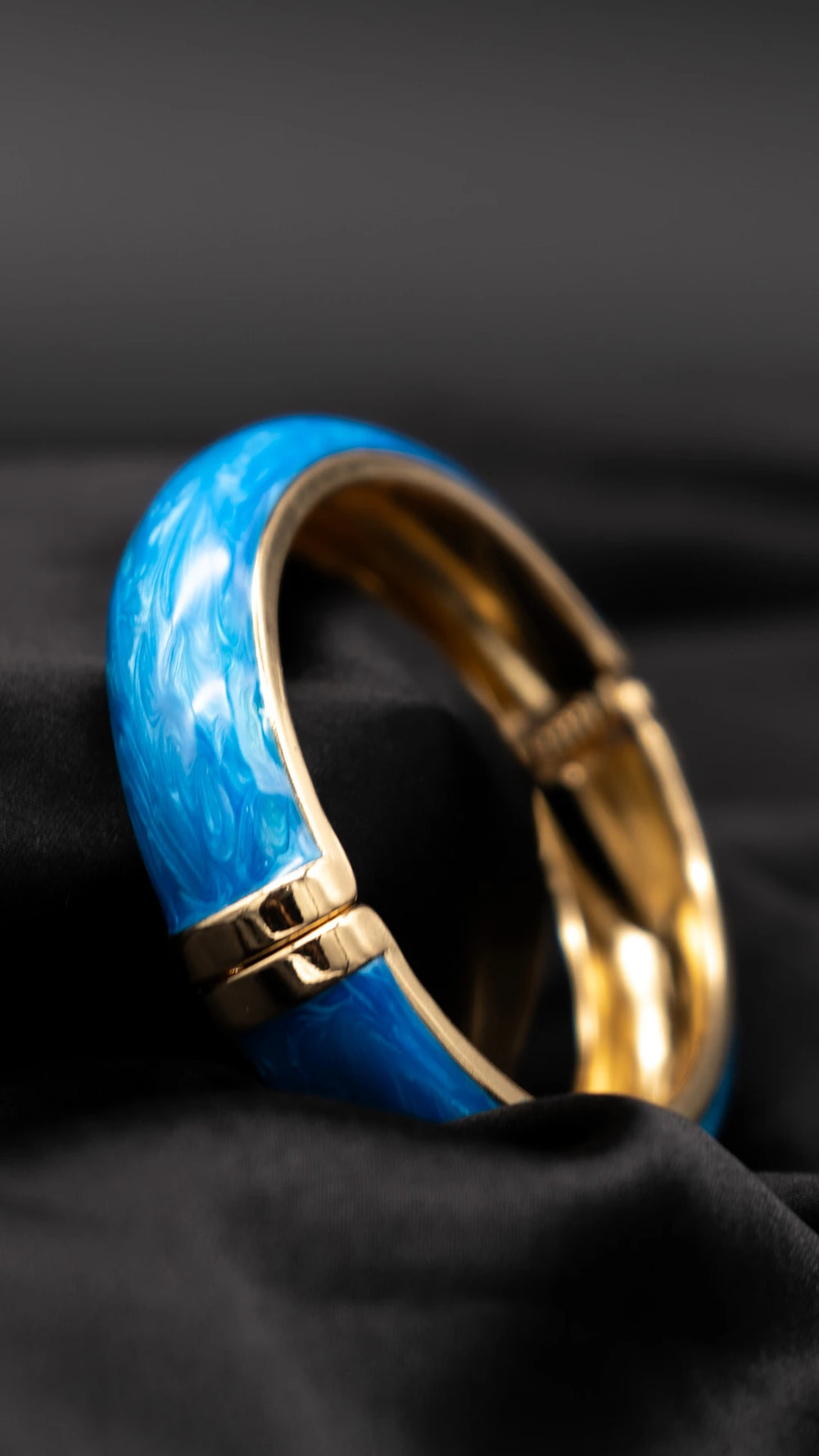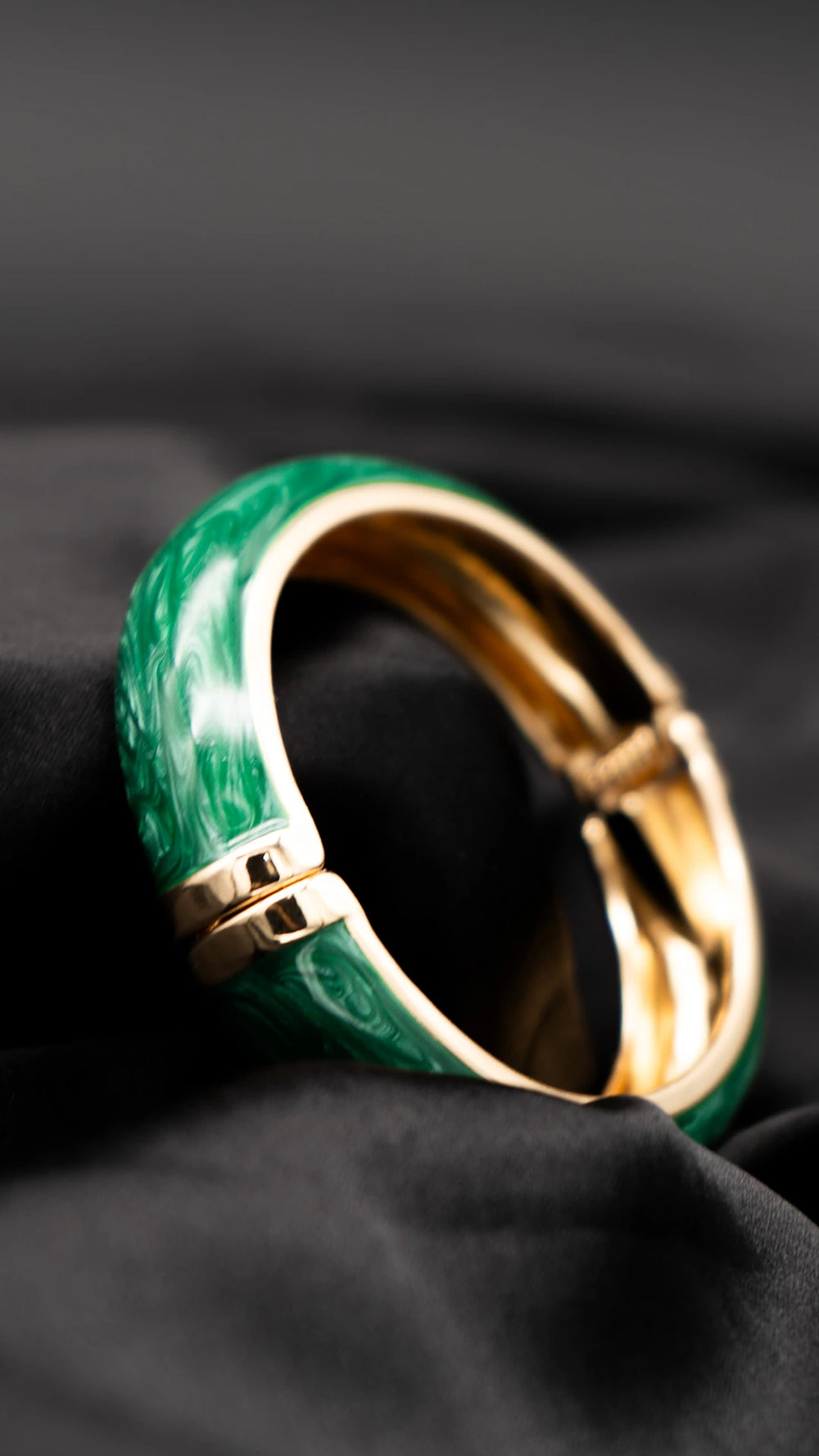 Smooth and radiant, the Evara Bangle embodies timeless minimalism with a sculptural twist. Its seamless, rounded form is coated in a glossy enamel finish, giving it a sleek and polished look. The subtle metallic edges add a hint of refinement, while the secure hinge closure ensures effortless wear. Whether styled solo or layered, Evara is the perfect blend of softness and strength.
