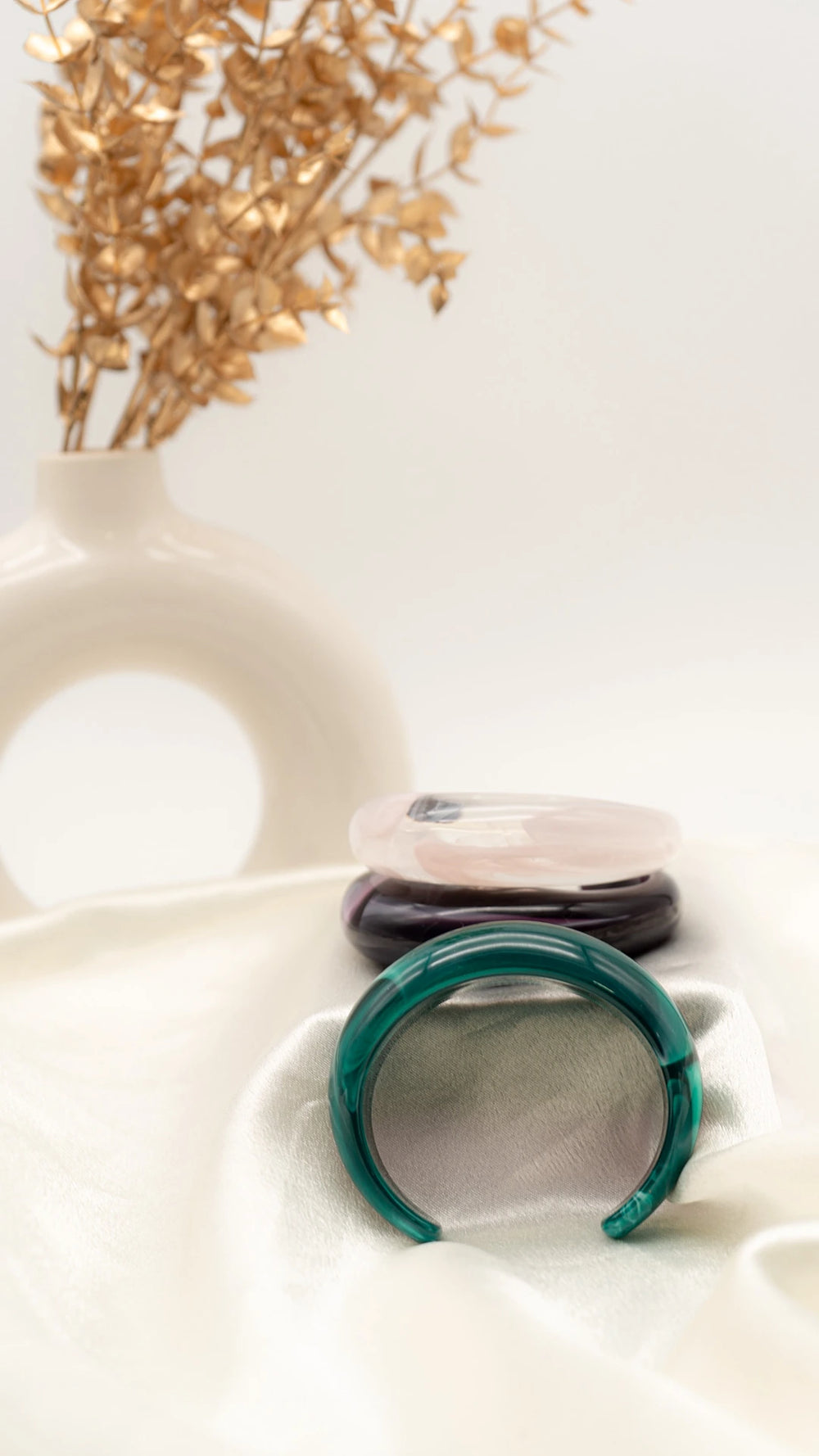 Delicate, airy, and effortlessly elegant — the Soft Blush Dome Resin Bangle is a subtle statement you can wear every day. Its pale blush hue with gentle translucence gives it a light, feminine touch, while the smooth dome silhouette adds modern sophistication. Lightweight and versatile, it’s perfect for layering or wearing solo for an understated pop of color.