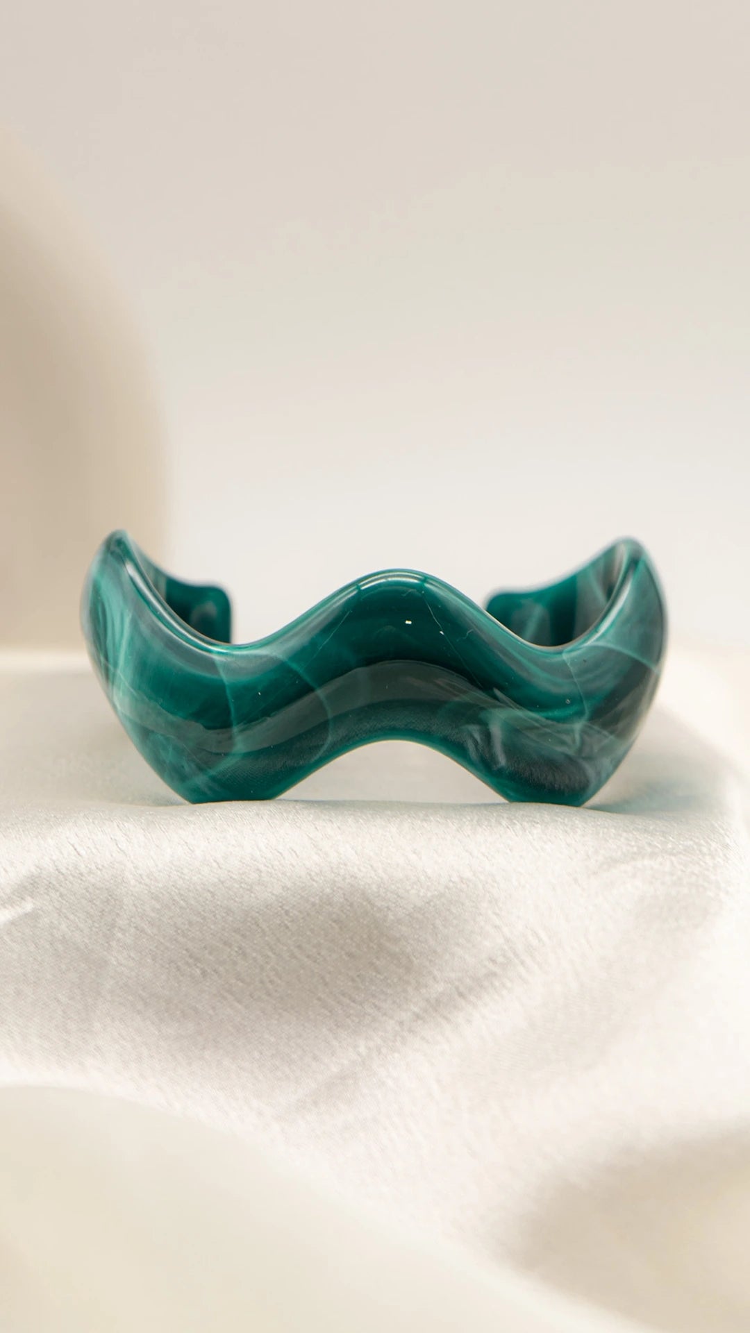 Sculptural wave design with marbled emerald effect