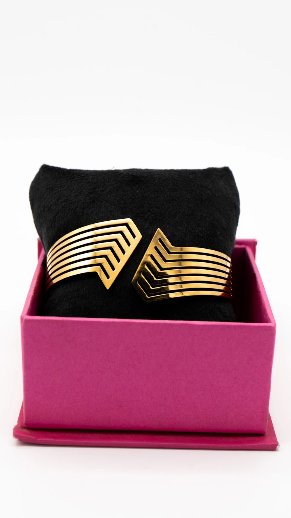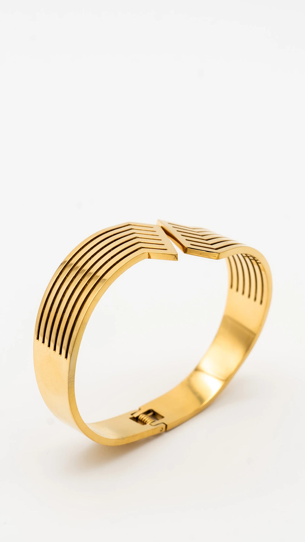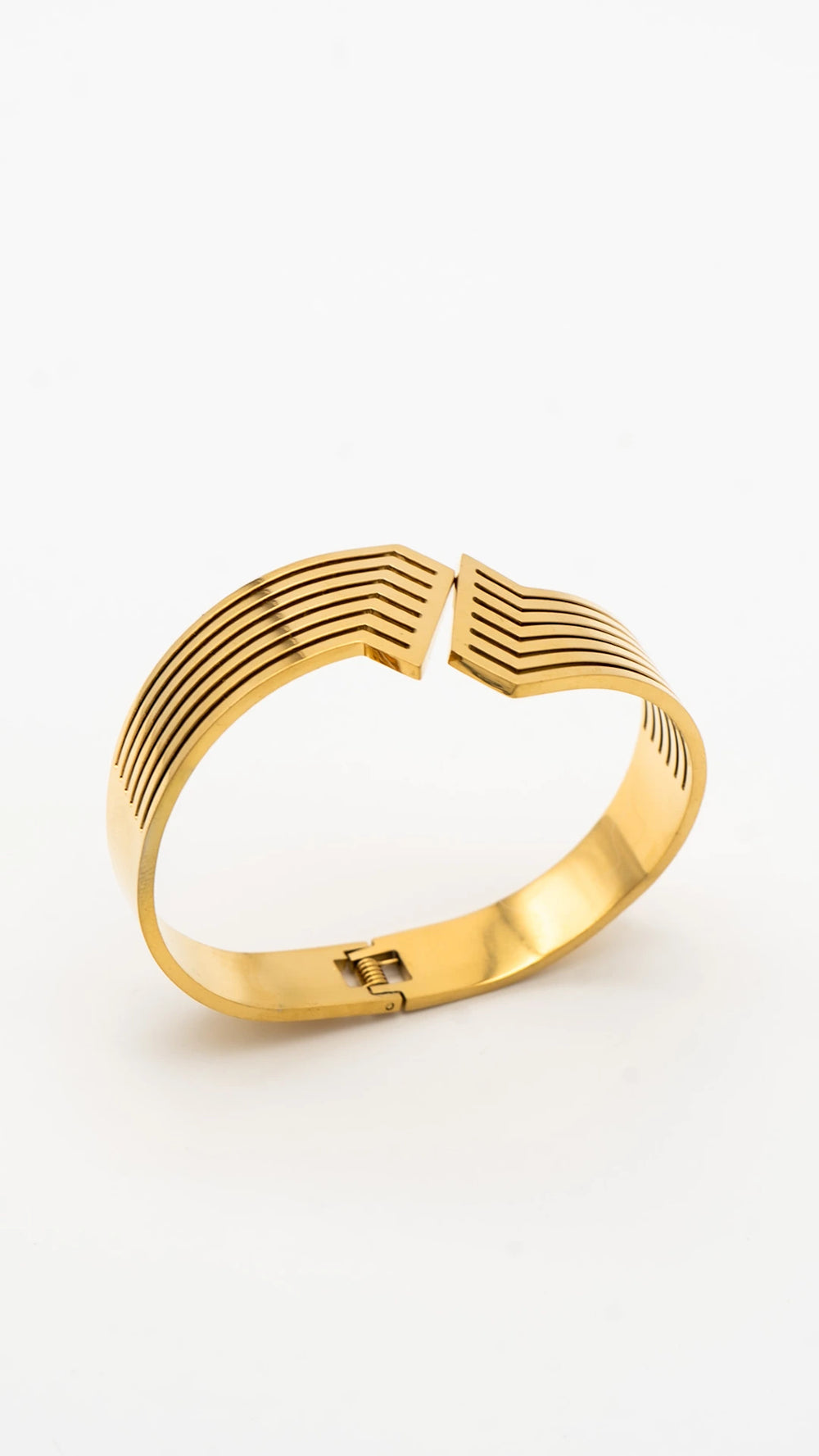 Refined with intention, the Solene Curve is a statement of quiet luxury. Sculpted in a bold yet fluid gold silhouette with clean angular edges, it strikes the perfect balance between strength and elegance. This anti-tarnish bangle is designed to elevate your look — whether paired with a crisp shirt or a silk slip. Minimal. Gleaming. Unforgettable.