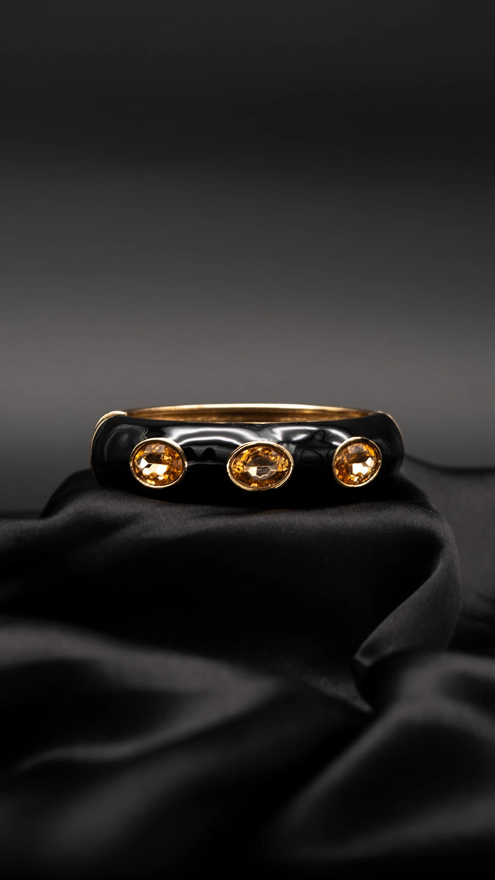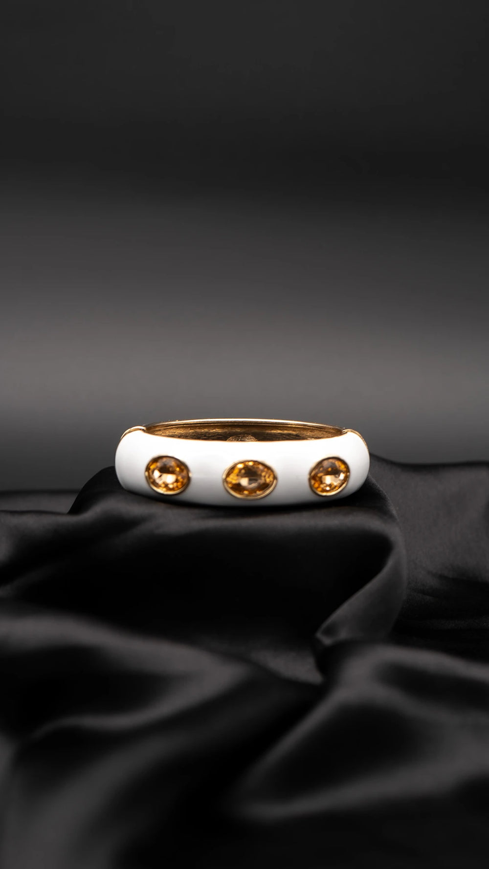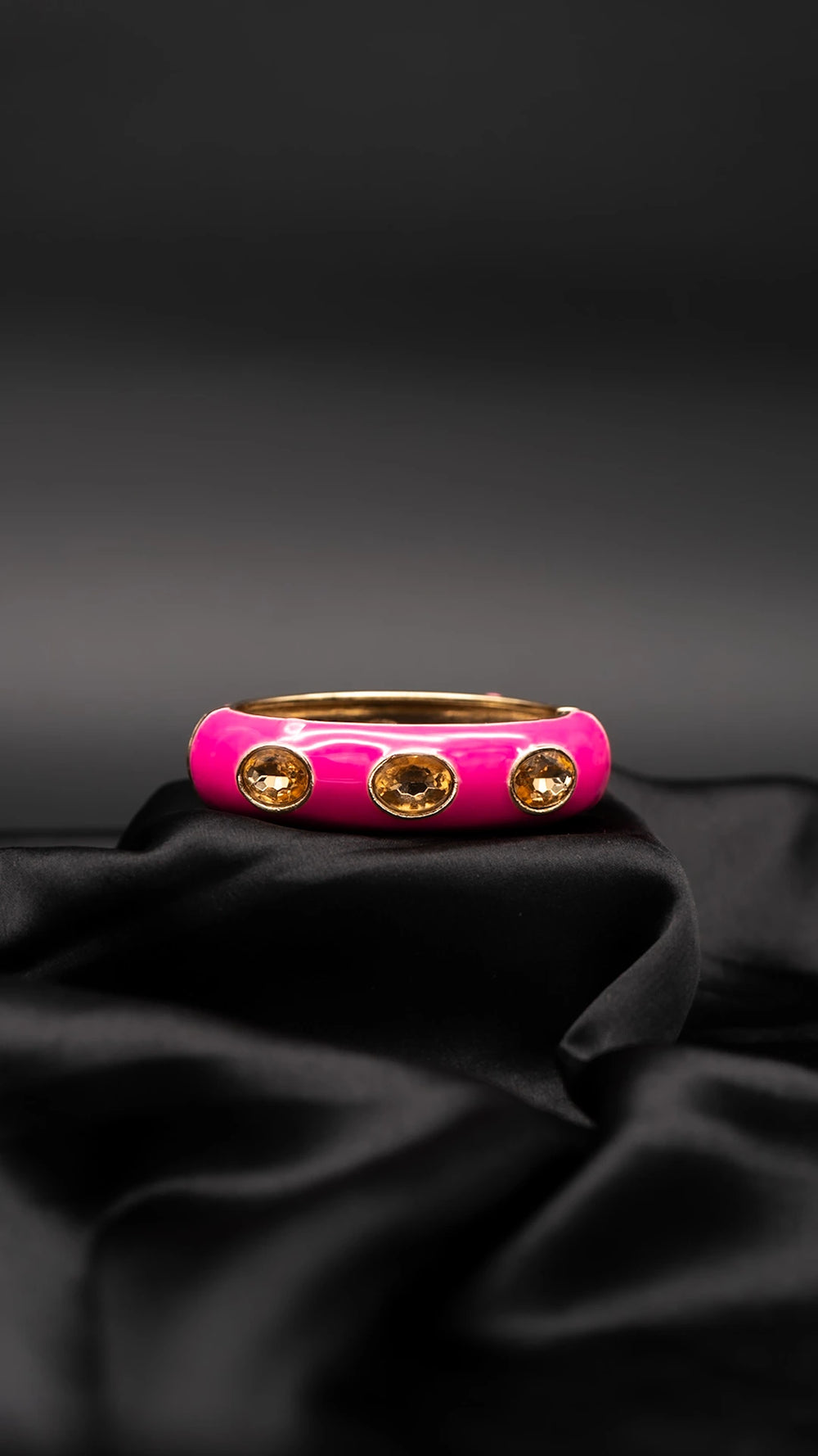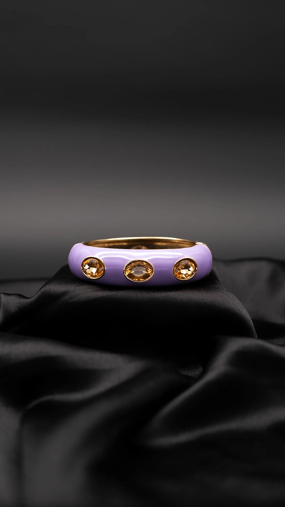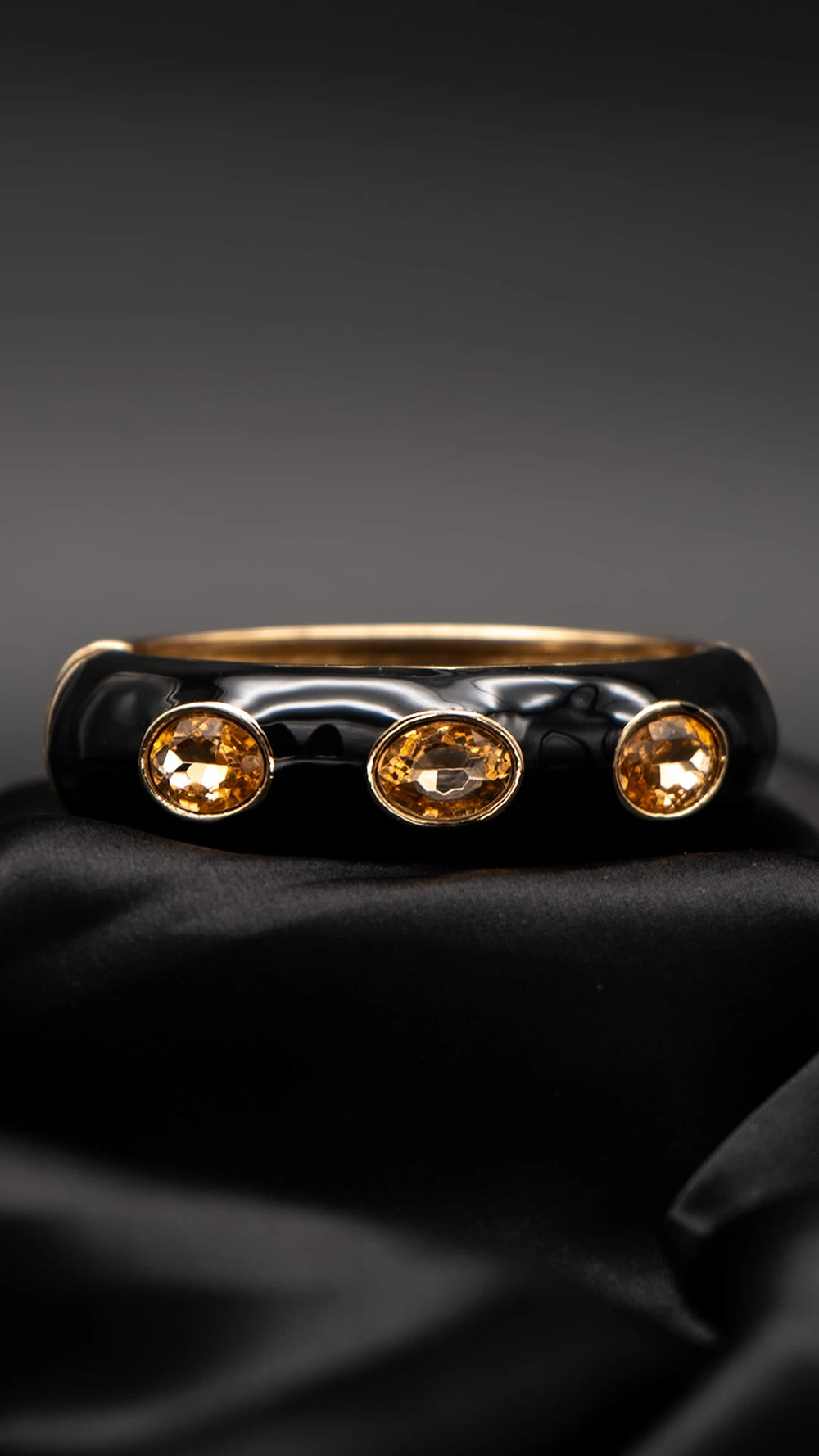 Chic and radiant, the Celene Bangle exudes playful glamour with its sleek, high-gloss finish and statement gem embellishments. The smooth, rounded silhouette is adorned with evenly spaced faceted stones set in polished metallic frames, adding just the right amount of sparkle. Lightweight yet impactful, Celene is designed for effortless elegance—perfect for dressing up any ensemble.