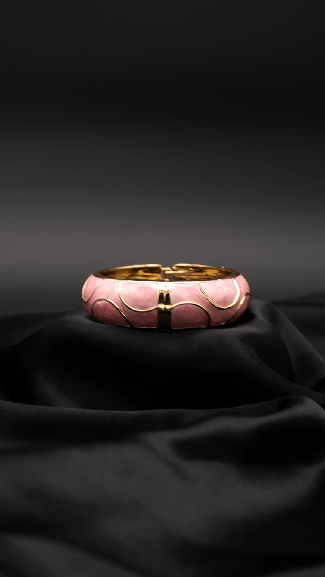 Soft, graceful and romantic, the Luna Baby Pink Bangle is crafted with marbled blush enamel in elegant crescent shapes, bordered by a refined gold outline. Its gentle curves and pastel tones bring a dreamy charm to any look, making it the perfect piece for both everyday styling and delicate statements.