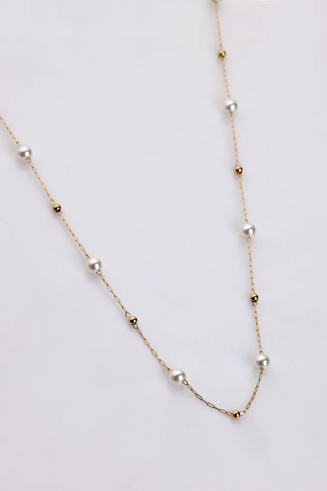 This high-end waterproof necklace combines the richness of golden hues with the timeless elegance of ivory beads. The intricate interplay of golden and ivory beads creates a luxurious design, perfect for making a statement at special occasions or elevating your everyday look. Durable and sophisticated, it’s a true symbol of refined style.