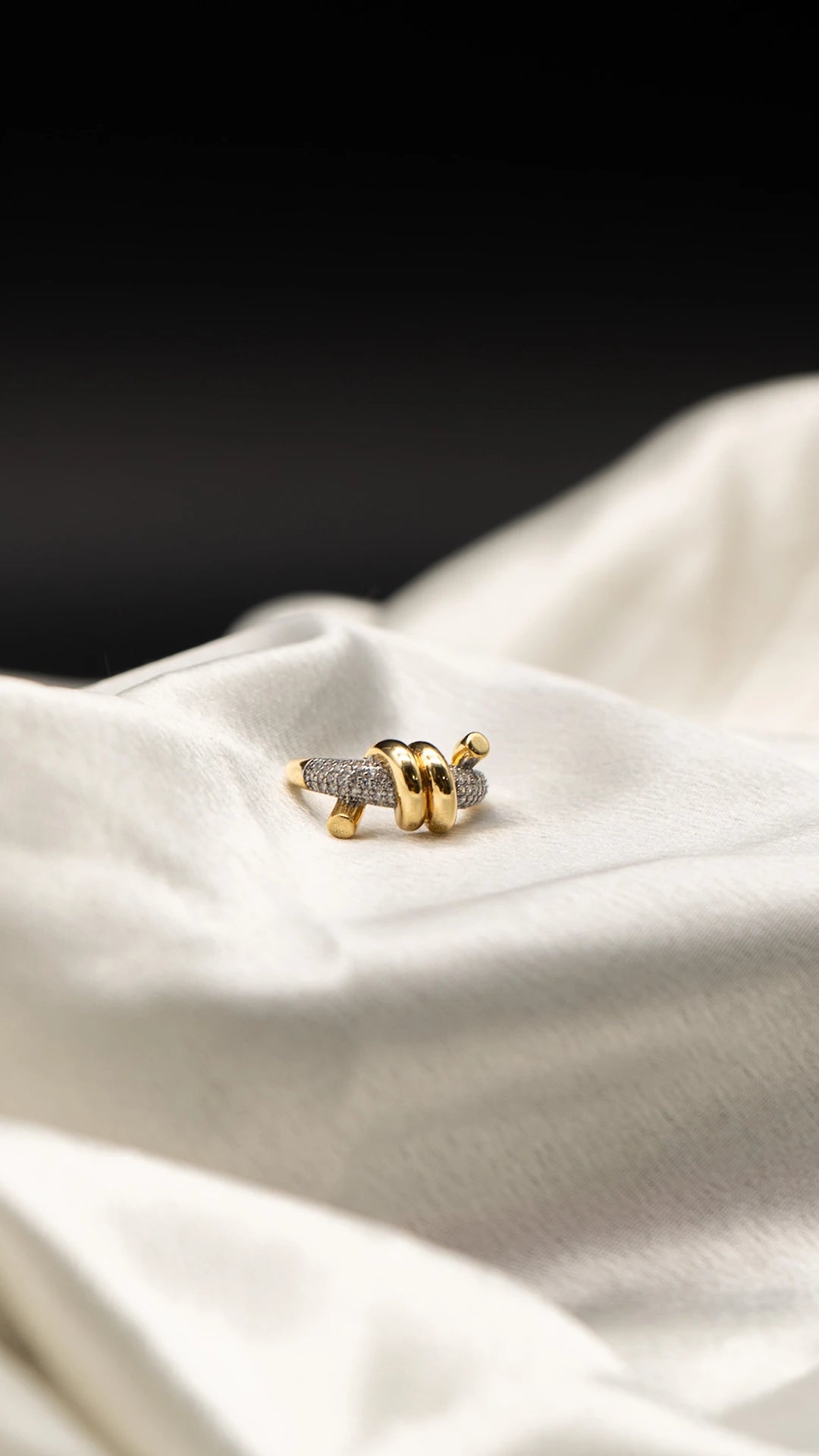 The Clasped Gold Ring is where elegance meets edge. Featuring a pavé-studded band embraced by two bold, golden clasps, this statement piece draws inspiration from modern hardware design while maintaining a luxe, polished finish. Its sculptural silhouette gives the illusion of strength and structure, perfectly balanced by the shimmer of delicate crystals. Crafted with a premium anti-tarnish coating and skin-friendly materials, the Clasped Gold Ring is a standout addition to your jewelry stack — confident, contemporary, and unapologetically bold.