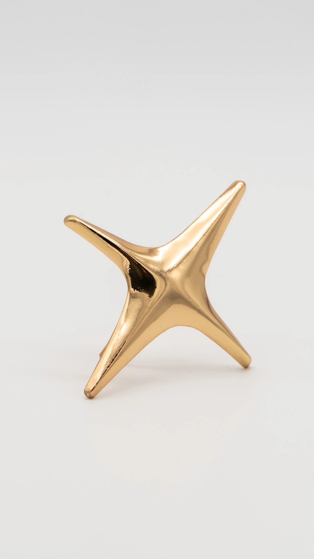 Daring, radiant, and impossible to ignore — Starflare is a sculptural gold claw clip that captures the brilliance of a shooting star. With its bold, star-shaped silhouette and high-shine finish, it adds instant drama to your hairstyle. Whether you're dressing up a sleek bun or giving edge to a casual half-up, this piece brings celestial energy to your look. Comes in standard one-size fit only.
