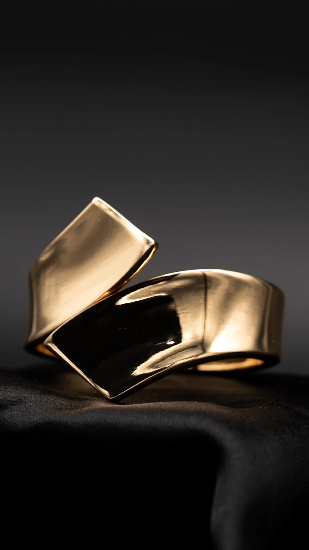 • High-polish gold surface with fluid, folded design