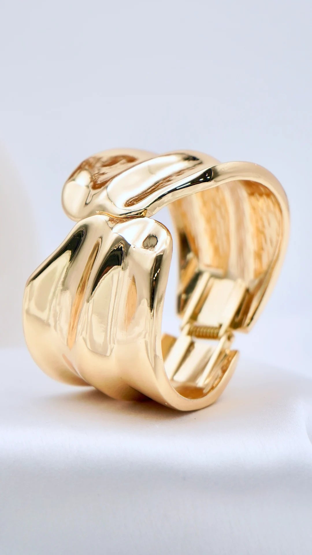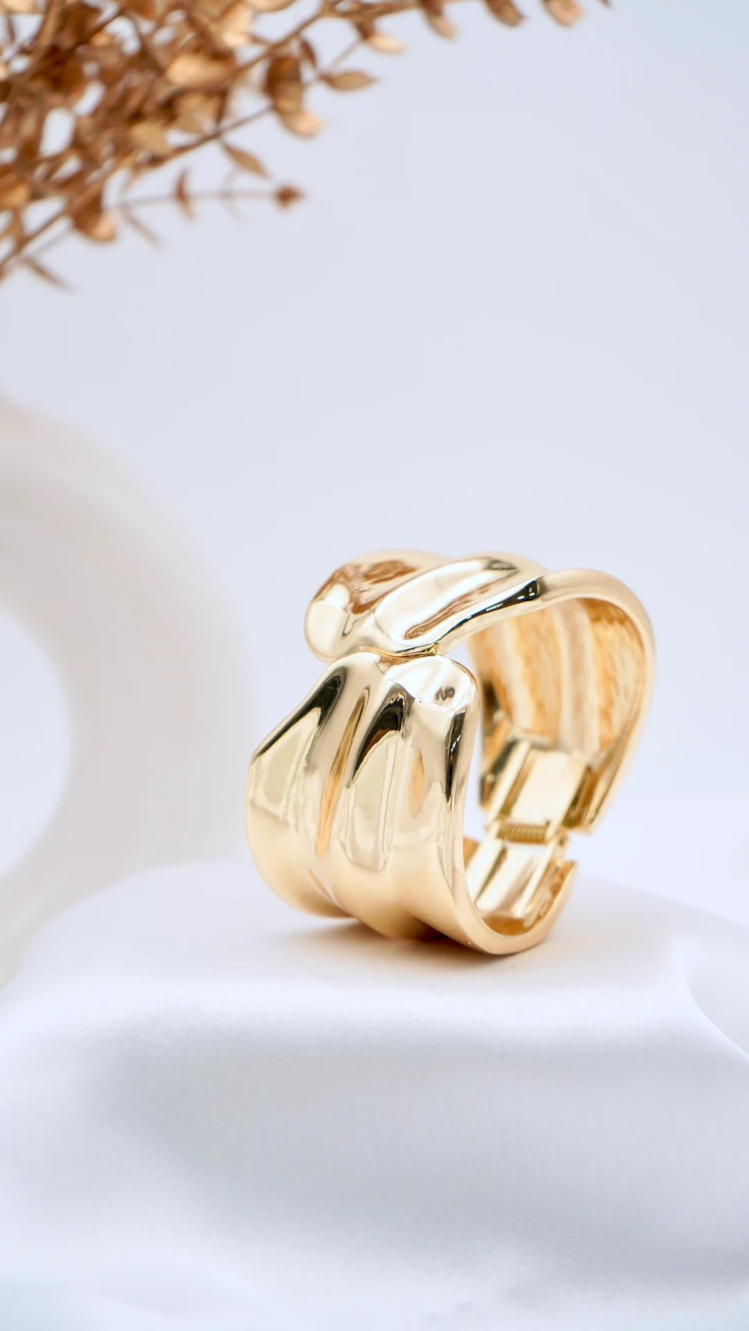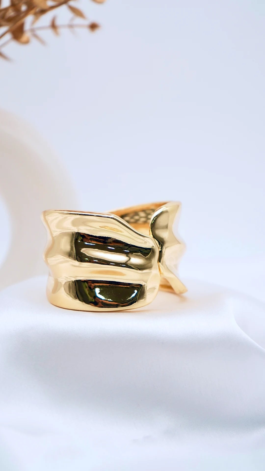 Nova is a power statement. Crafted with a bold, sculptural form and a mirror-like gold finish, this bangle reflects light beautifully and commands attention from every angle. Its fluid yet structured silhouette gives it a modern edge while remaining wearable and refined.