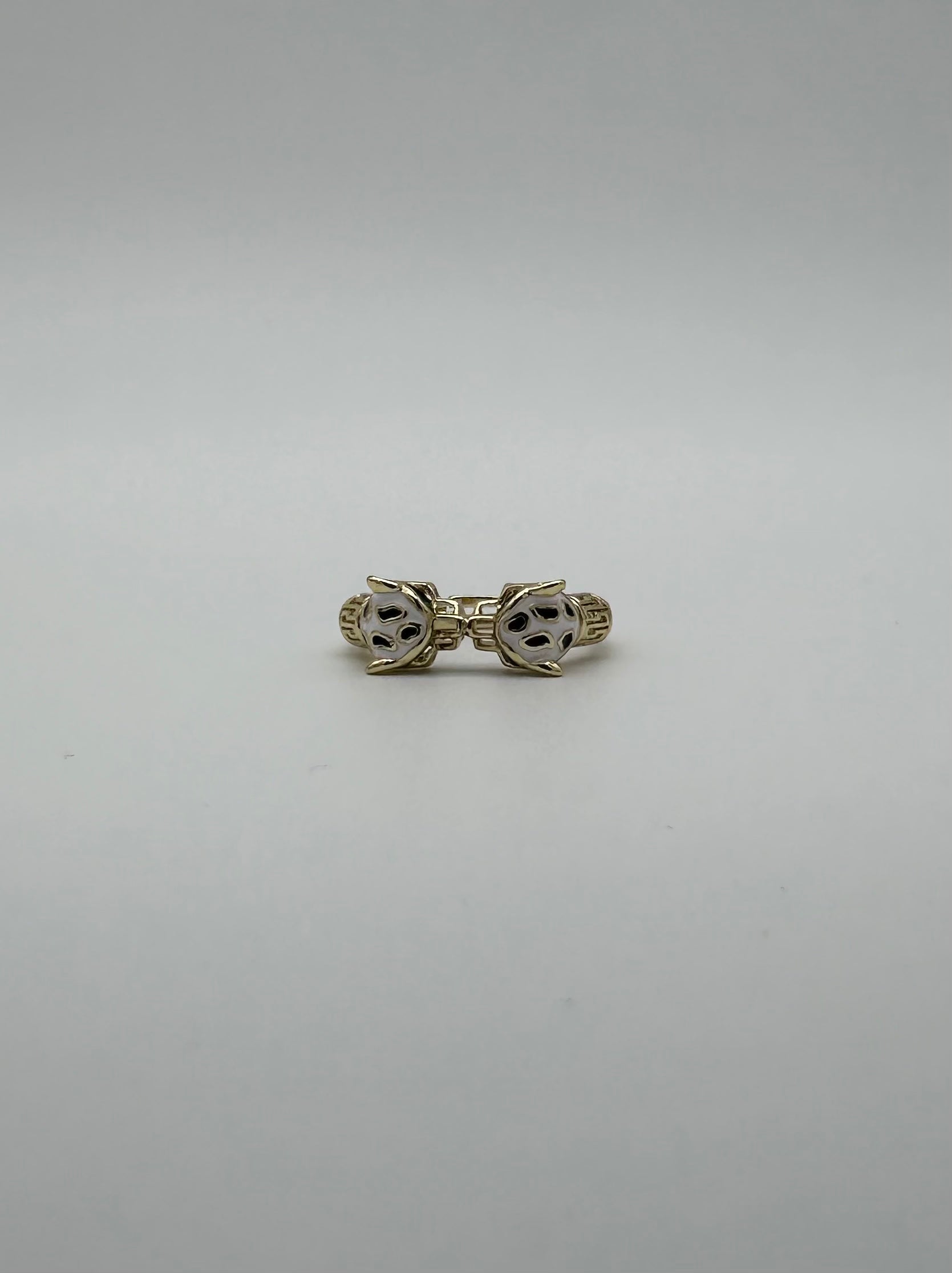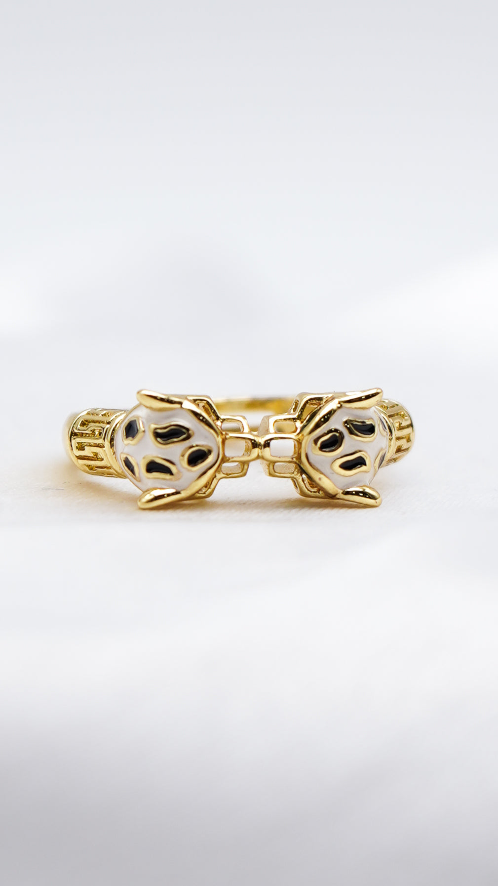 Untamed and unapologetic — the Feral Ring features dual clawed panther motifs locked in a fierce grip. With its antique gold finish and bold design, this ring channels raw power and primal elegance. Waterproof, tarnish-free, and made for those who lead the pack, not follow.