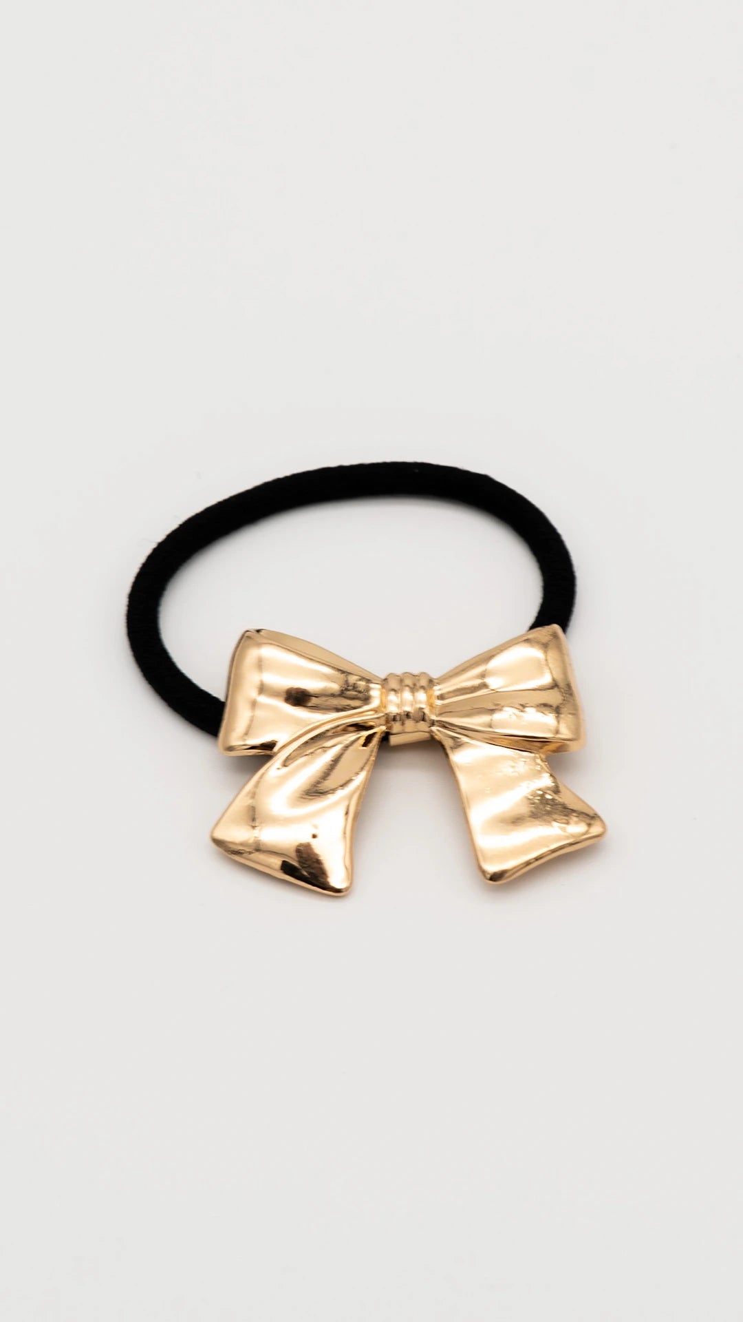 Classic meets charm with Velvet Bow — a polished golden hair tie that brings a sweet yet sophisticated finish to any look. Its sculpted bow design adds a playful flair while the high-shine finish keeps things luxe. Whether worn in a low ponytail or around your wrist, it’s the perfect pop of golden grace.