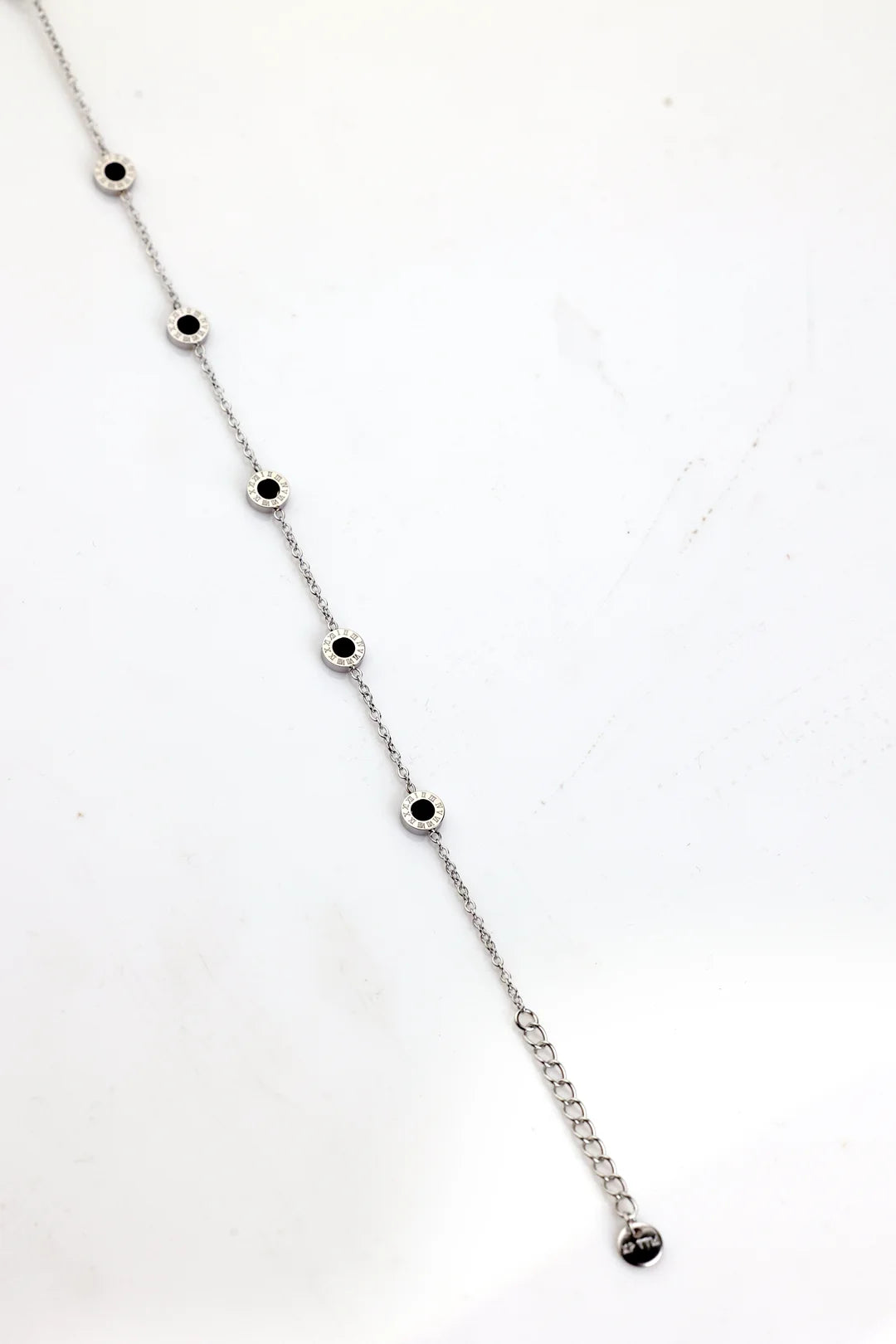 The Roman Grace Silver Bracelet is a high-quality, elegant piece adorned with charms featuring classic Roman numerals. Crafted from premium silver, its minimalist design exudes sophistication, making it a timeless accessory for any occasion. Perfect for those who appreciate subtle yet meaningful details in their jewelry.