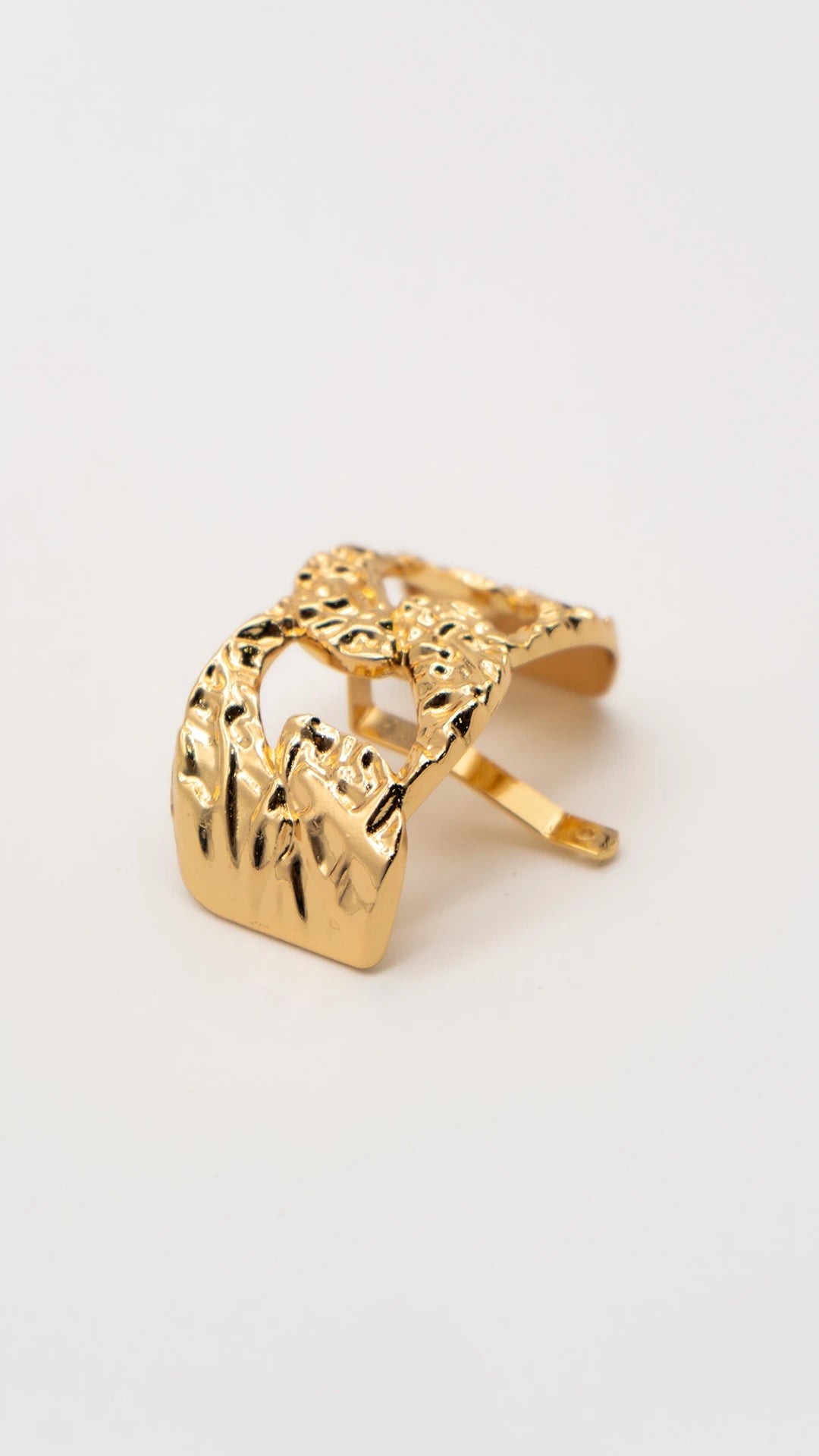 Artful. Bold. One of a kind — Molten Link is a golden hair pin hook that transforms the classic chain link into a sculptural statement. With its intricate molten texture and radiant gold tone, this piece brings a luxe, fashion-forward edge to buns, ponytails, or half-up styles. A nod to modern design — where elegance meets attitude. Comes in standard one-size fit only.