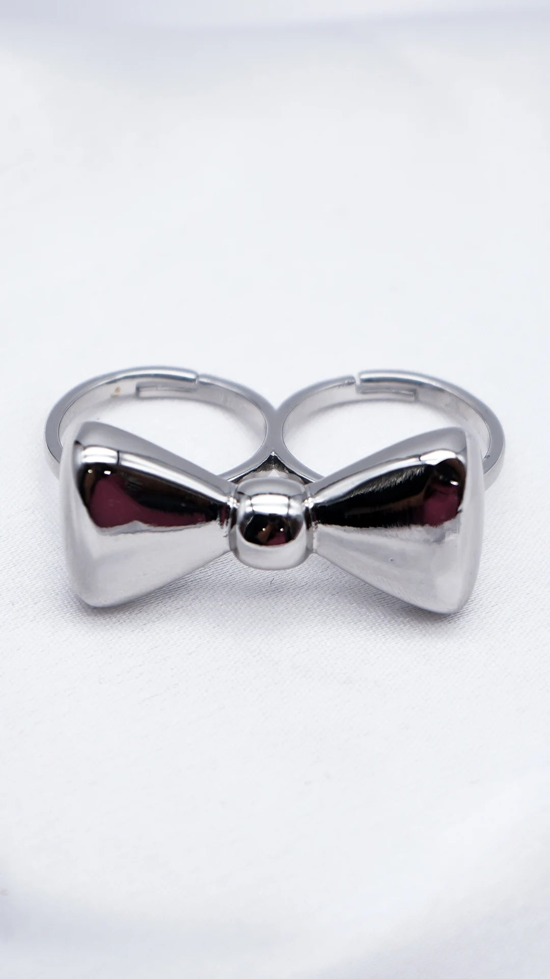 Delicate yet striking, the Silken Silver Knot Ring captures the charm of a perfectly tied bow in a sleek, high-shine silver finish. Crafted for elegance and comfort, this waterproof and tarnish-free piece adds a touch of graceful sophistication to any look. A timeless symbol of style — effortlessly tied.