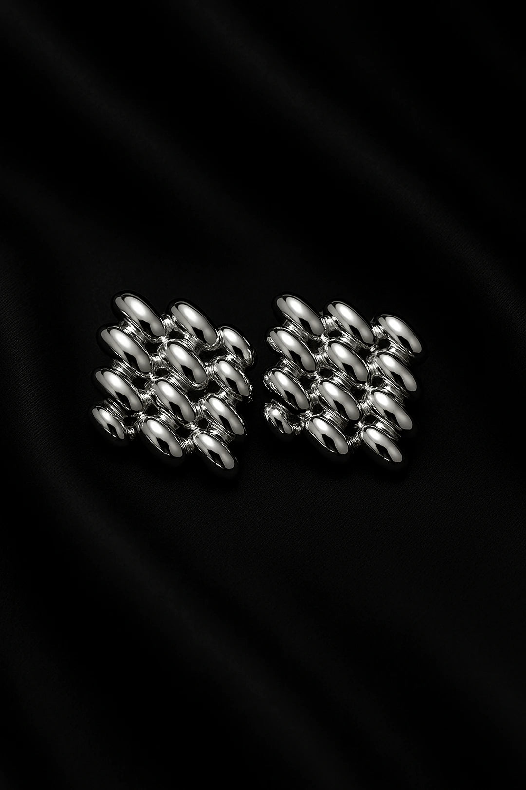 Make a bold yet refined statement with our Silver Mesh Earrings — a modern take on sculptural elegance. Featuring a unique interlinked design that mimics metallic mesh, these earrings exude contemporary charm with a glossy chrome finish. Lightweight yet impactful, they’re perfect for turning heads at events or elevating your everyday outfit. Anti-tarnish and crafted for comfort, these are the power pieces your jewelry box has been waiting for.