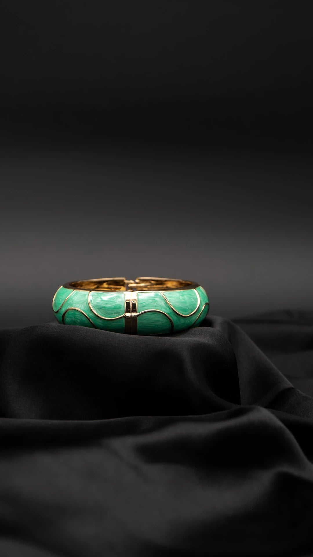 A bold twist on elegance, the Luna Lush Green Bangle features wave-like enamel panels in a rich, glossy lush green, encased in gleaming gold contours. Its sculptural silhouette and polished finish create a timeless statement piece that brings a hint of luxury and nature-inspired calm to your wrist.