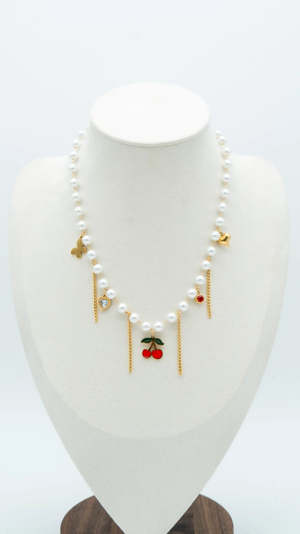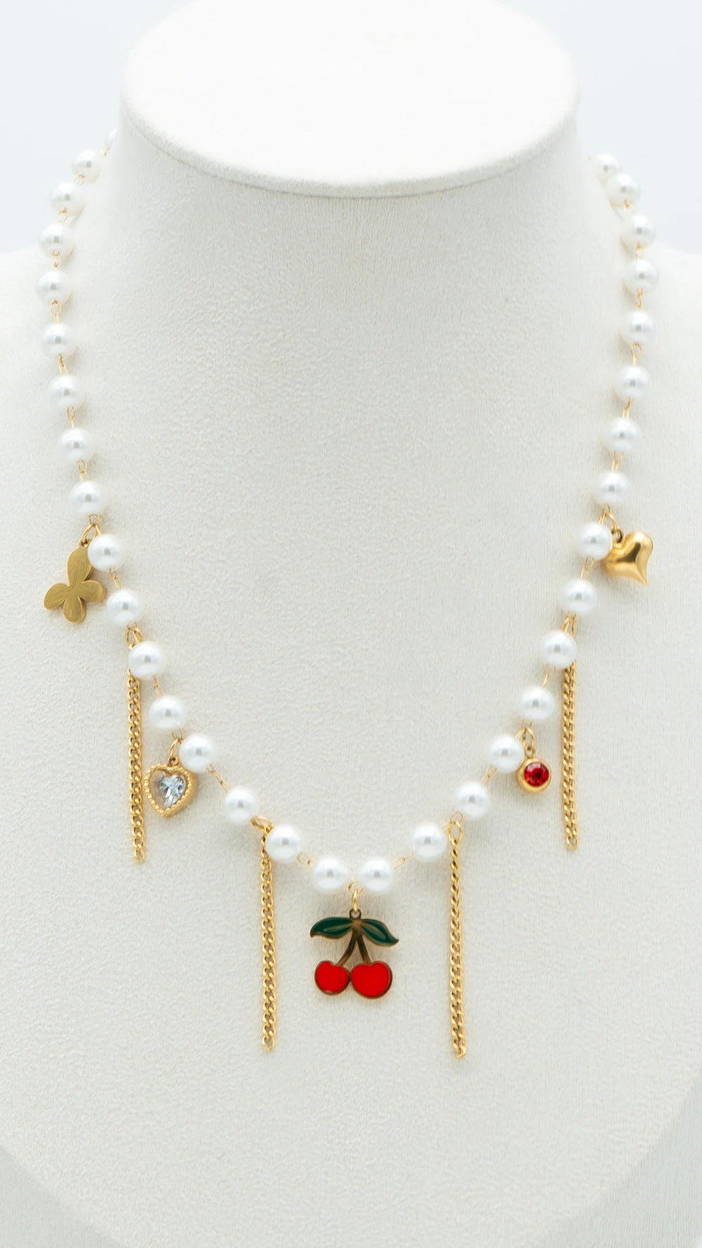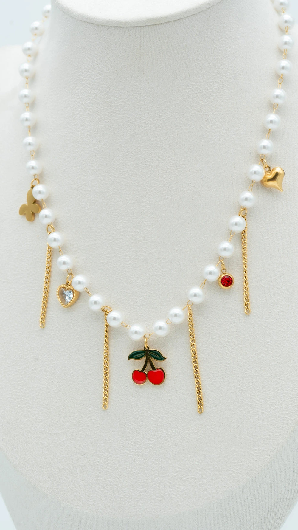 Meet Chérie Drops – a playful twist on classic pearls, crafted for the modern muse. This pearl beaded necklace features whimsical gold chain drops and enamel charms including cherries, hearts, and stars, blending elegance with a flirty pop of color. Lightweight, anti-tarnish, and waterproof, it’s your go-to statement piece for brunches, dates, and dreamy vacays. Perfectly balances Parisian chic with Y2K charm, making it a must-have in every jewellery lover’s collection.