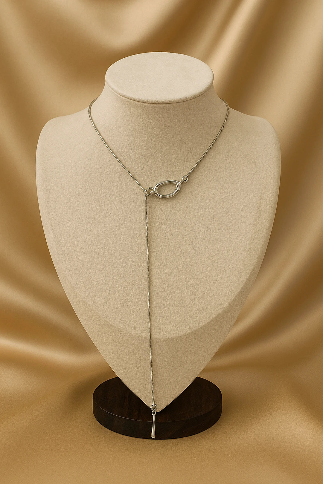 Graceful yet modern, Élan Drop is a minimalist silver lariat necklace defined by its sculptural clasp and sleek fluidity. The elegant drop detail adds a touch of sophistication, making it perfect for both everyday elegance and elevated occasions. Waterproof, tarnish-free, and effortlessly refined — this piece brings quiet confidence to any look.