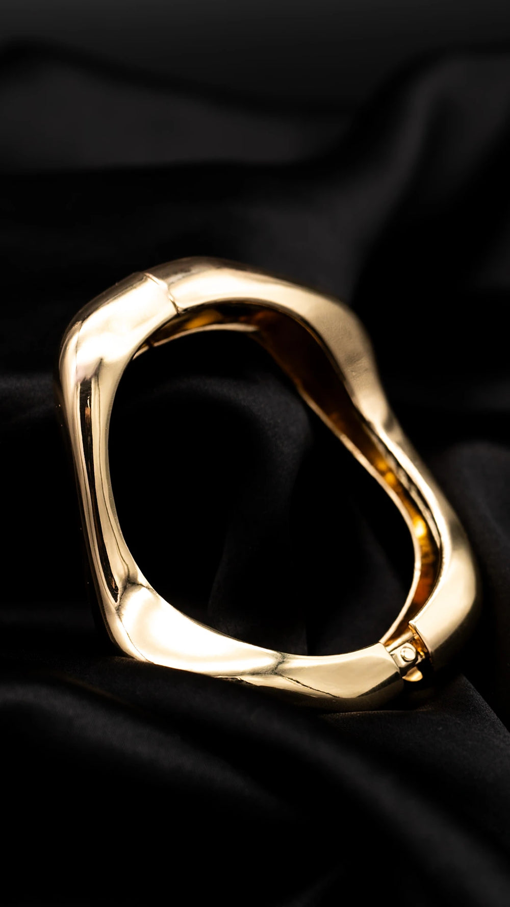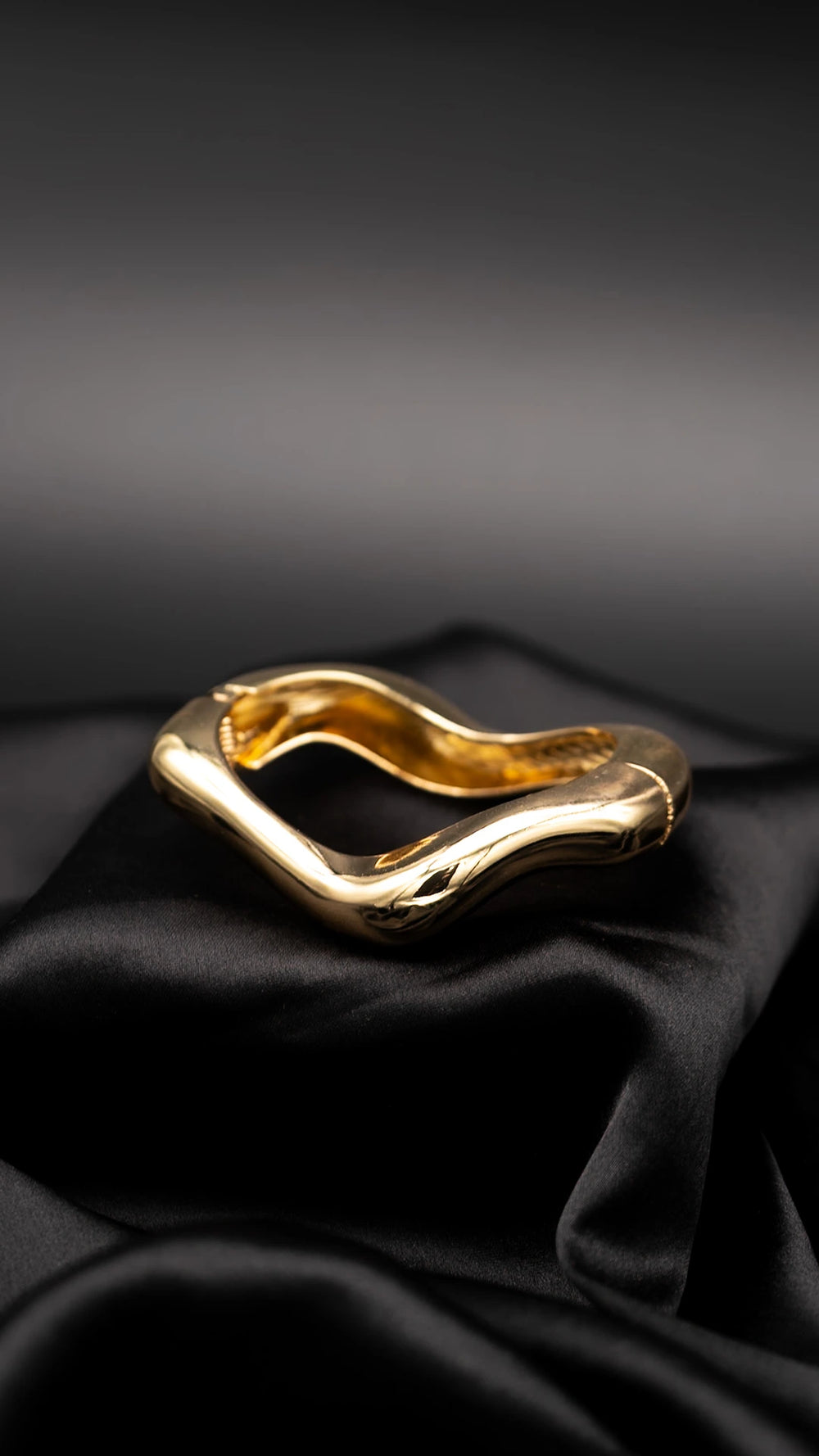 Graceful and fluid, the Subtle Wave Bangle is an ode to understated elegance. With its soft, sculpted curves and high-shine gold finish, this piece captures the beauty of organic movement. A minimal statement that flows effortlessly with any look — refined, timeless, and quietly bold.