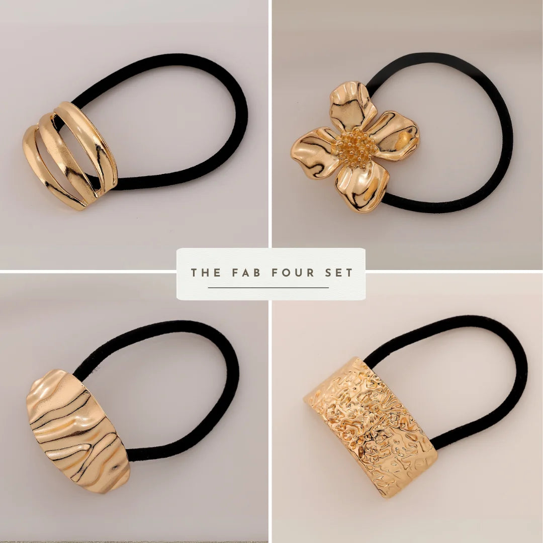 Your stylish solution to elevate ordinary ponytails! Designed to replace traditional hair ties, these exquisite cuffs add a touch of elegance and sophistication to your hairstyle. Crafted with high-quality materials and available in stunning designs, they seamlessly secure your hair while avoiding the damage and dullness of standard elastics. With a range of unique shapes and finishes, including floral, starfish, and triple designs, you can express your individuality and enhance your look effortlessly. Say goodbye to boring ponytails and hello to a classy, eye-catching style that turns heads!