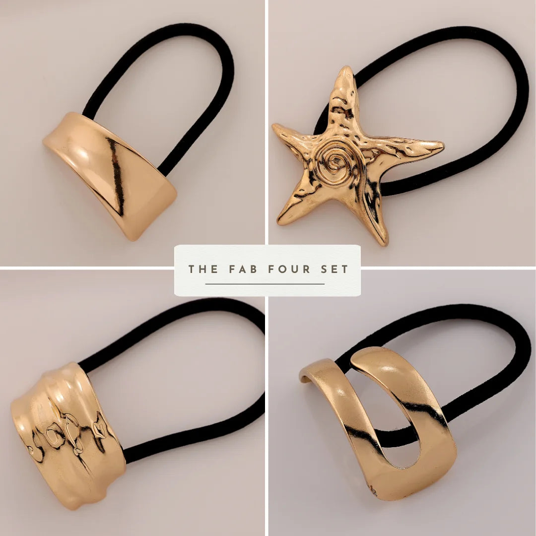 Your stylish solution to elevate ordinary ponytails! Designed to replace traditional hair ties, these exquisite cuffs add a touch of elegance and sophistication to your hairstyle. Crafted with high-quality materials and available in stunning designs, they seamlessly secure your hair while avoiding the damage and dullness of standard elastics. With a range of unique shapes and finishes, including floral, starfish, and triple designs, you can express your individuality and enhance your look effortlessly. Say goodbye to boring ponytails and hello to a classy, eye-catching style that turns heads!