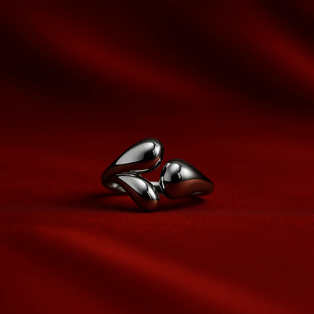A delicate harmony of shimmer and shape, the Silver Dew Ring features fluid teardrop-like motifs that glisten like early morning dew. Crafted in a sleek silver-tone finish, this open-style ring wraps your finger with understated elegance — perfect for adding a cool, modern glow to your everyday look.