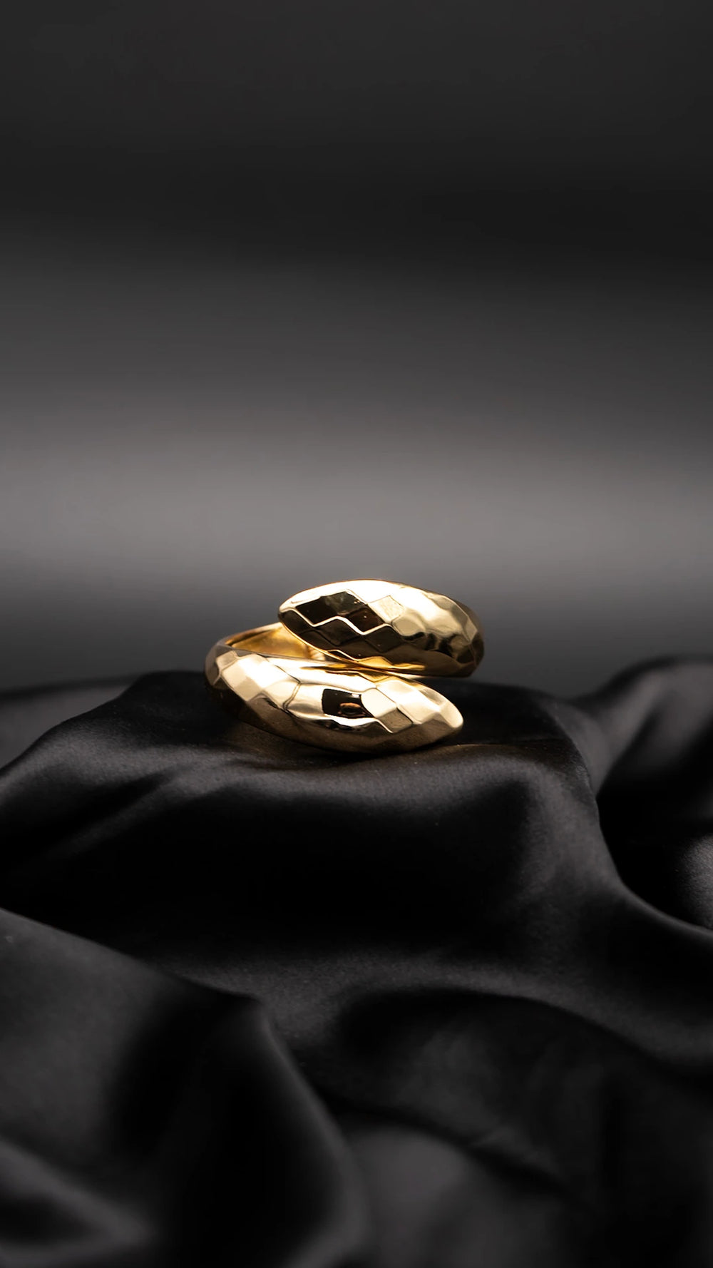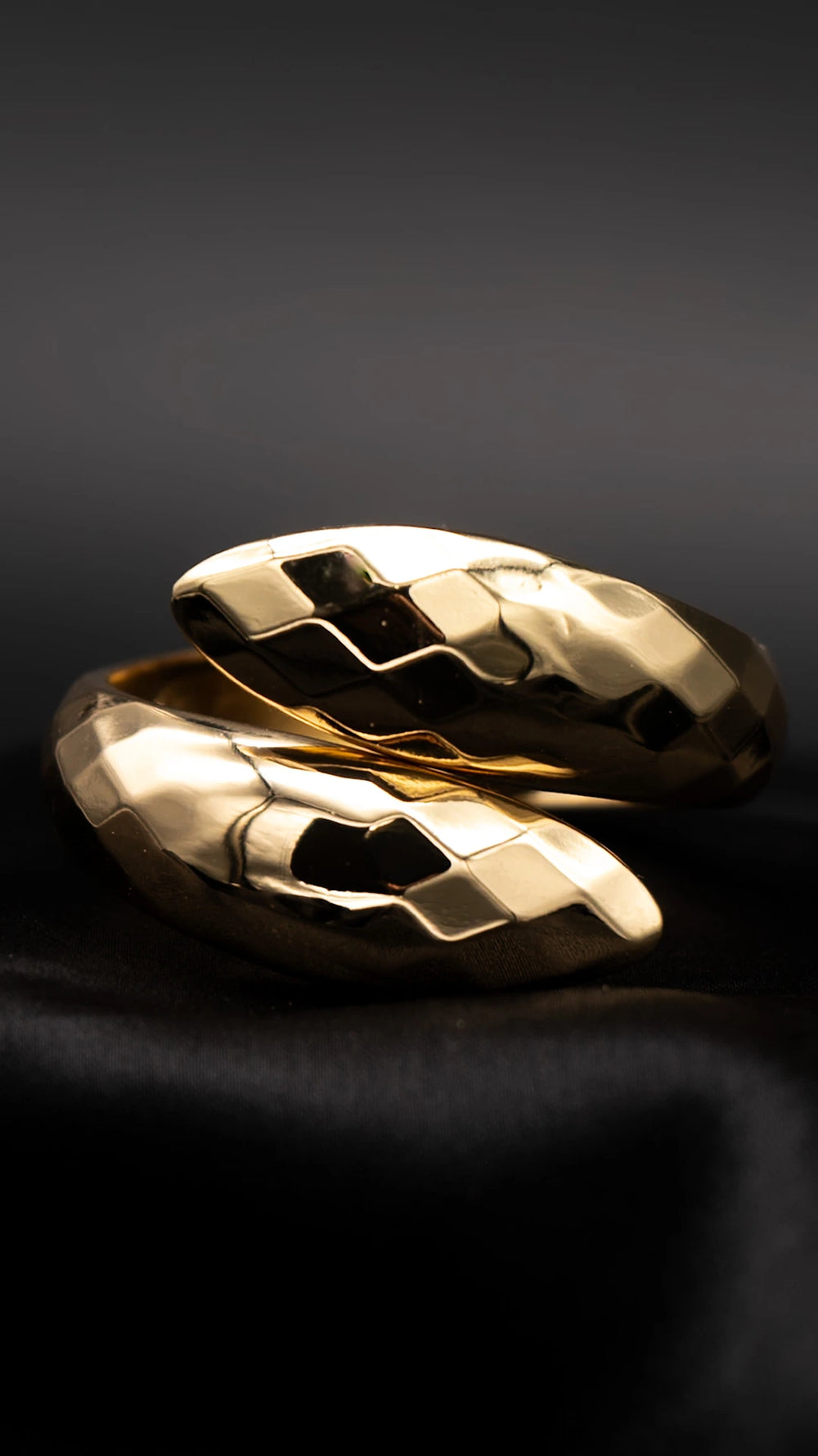 Fierce yet refined, the Solar Scale Bangle is a bold tribute to texture and shine. With its high-shine gold finish and sculpted, scale-like surface, this statement piece catches the light with every move — exuding strength, elegance, and a hint of wild allure.