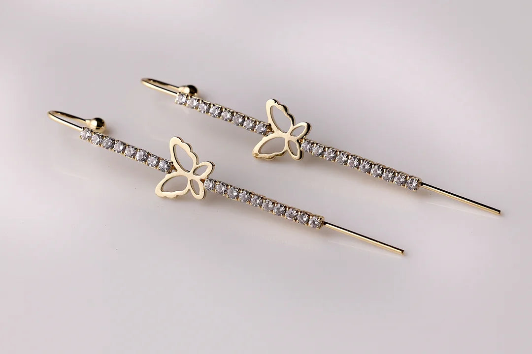 Experience Suav Jewels’ exclusive pin hook earrings – a chic accessory requiring just one piercing. Designed with a gold-tone finish and adorned with sparkling diamond-like stones, these high-quality earrings offer a luxurious, stylish look. Trendy and unique, they’re perfect for making a statement.