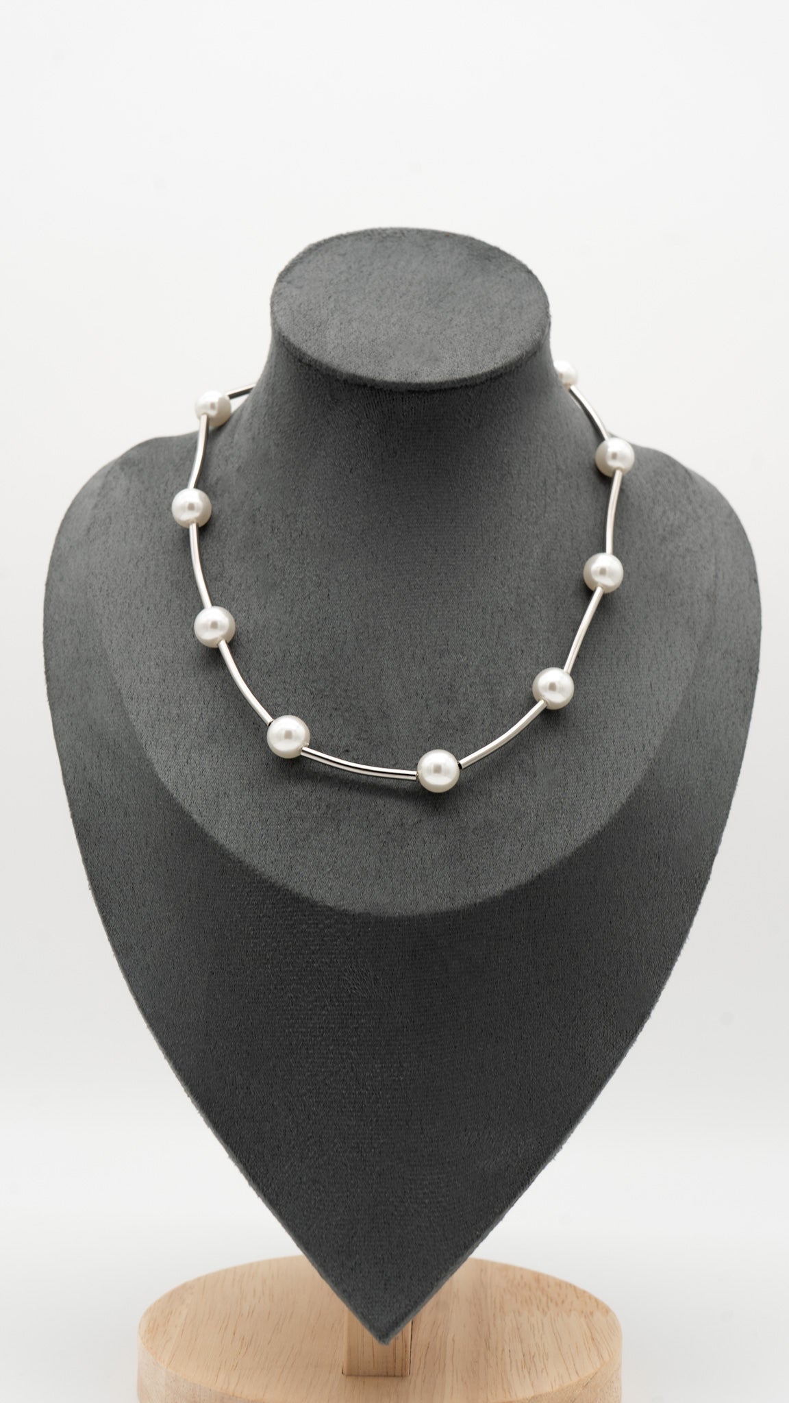 Inspired by the gentle rhythm of ocean waves, the Gleaming Tide Necklace captures elegance in motion. Lustrous pearls are spaced along sleek gold bars, creating a fluid silhouette that feels both timeless and contemporary. Crafted with ultra high-quality, tarnish-resistant materials, this piece is perfect for adding soft sophistication to any look. Whether paired with a crisp shirt or a flowing dress, it moves with you — like light on water. Classic, calm, and endlessly beautiful.