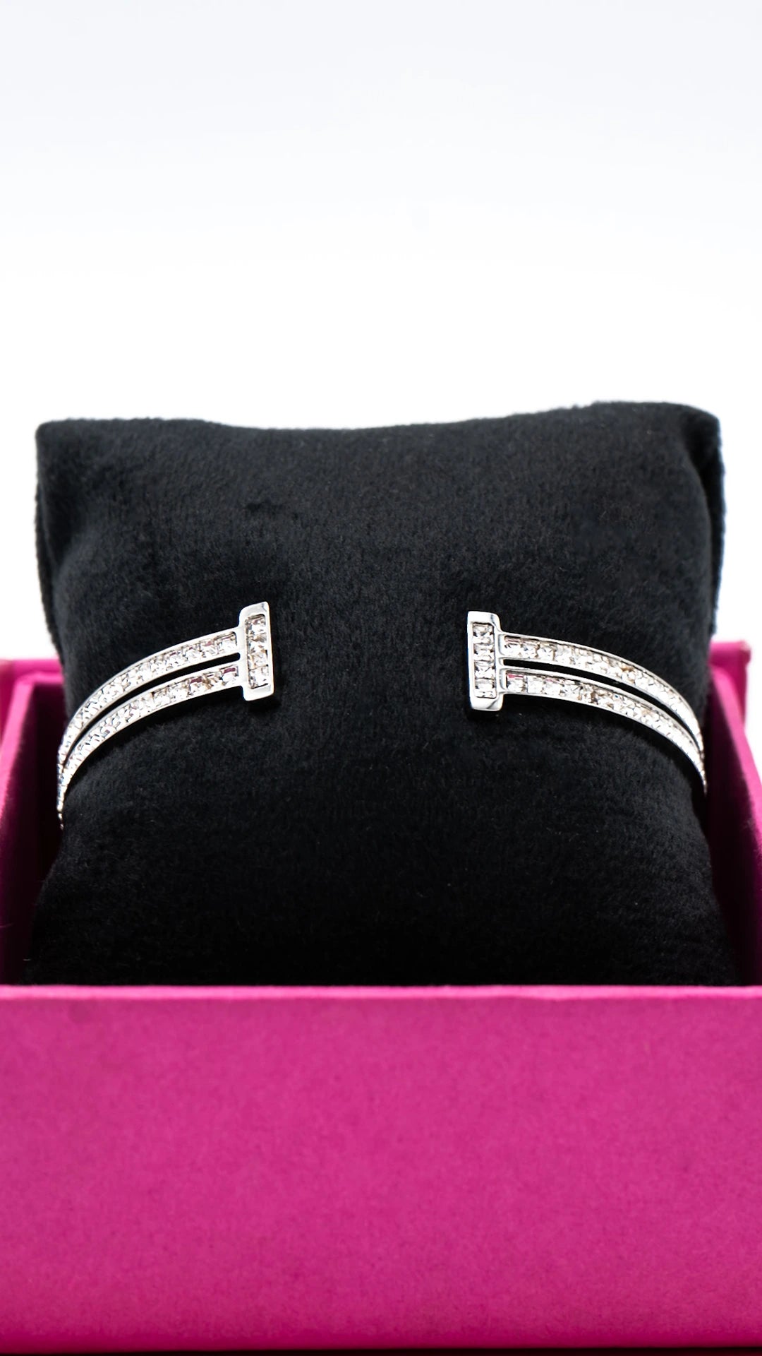 Subtle brilliance meets timeless sophistication in the Lumière Bangle. Designed with dual crystal-studded bands and a sleek open-end finish, this silver-toned piece captures and reflects light with every move. Its minimal form paired with radiant sparkle makes it the perfect blend of everyday elegance and evening charm. Anti-tarnish, lightweight, and endlessly versatile — because a little lumière (light) goes a long way.