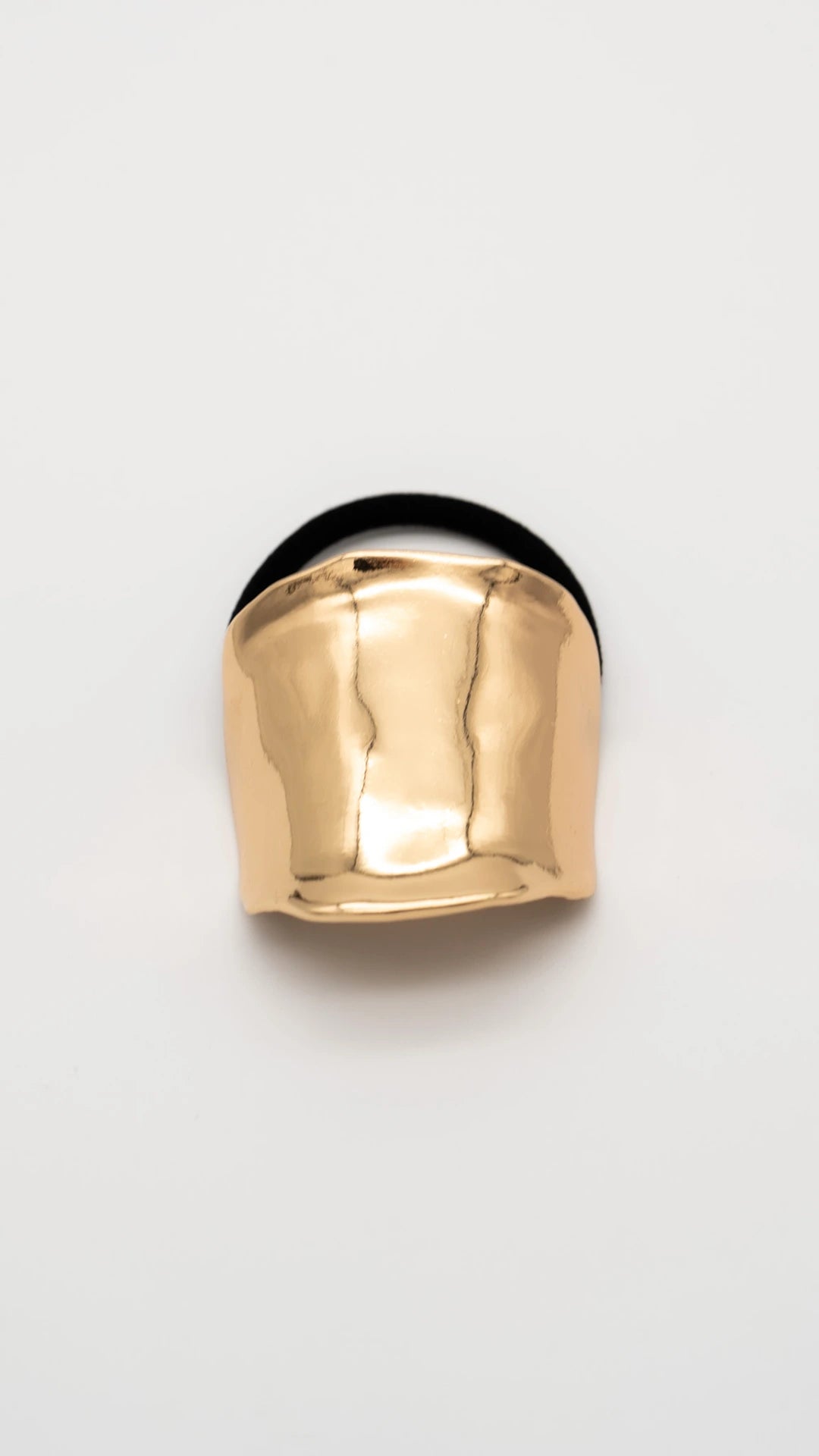 With its softly contoured form and high-shine gold finish, this hair tie is designed to elevate even the simplest styles with a polished, modern edge.
